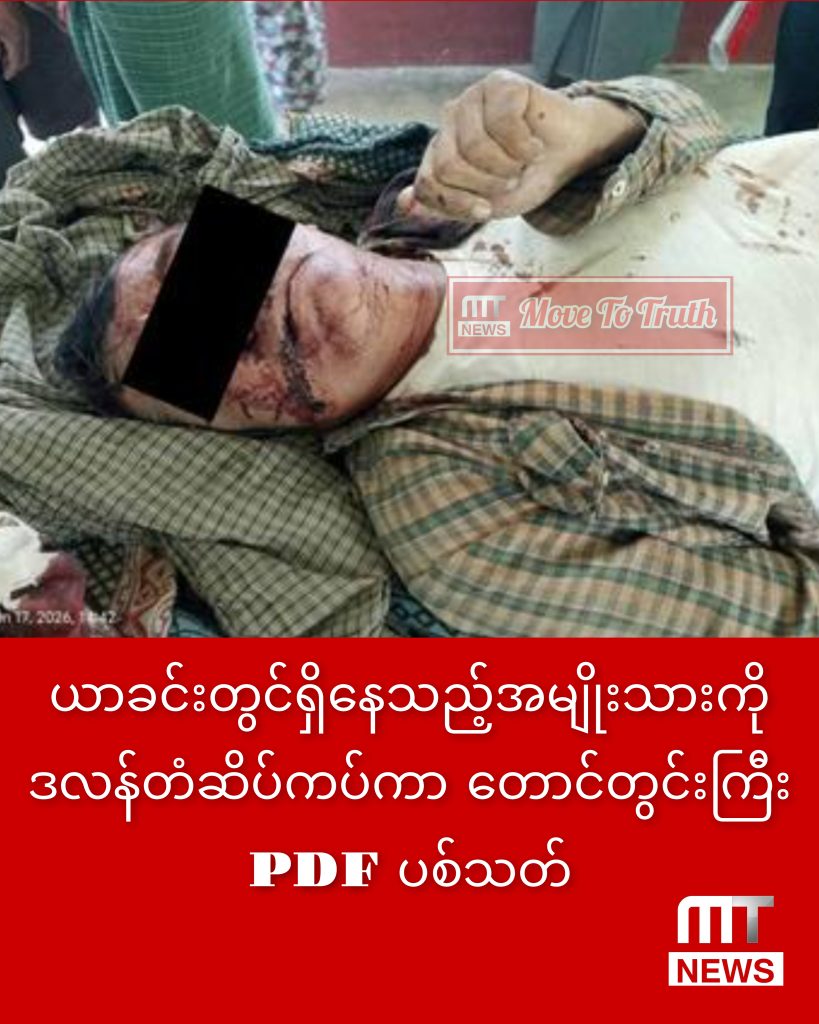 NUG ဩဇာခံ တောင်တွင်းကြီး PDF များ၏ ကျးးလွန်မှုဖြစ်စဥ်မှာ ယမန်နေ့ ၂၀၂၆ ခုနှစ်၊ ဇန်နဝါရီ ၁၇ ရက် နံနက် ၁၁ နာရီတွင် မကွေးတိုင်းဒေသကြီး၊ တောင်တွင်းကြီးမြို့နယ်၊ သစ်ခုတ်ကွင်းကျေးရွာနေ ဦးစိုးနိုင်(၅၄)နှစ်သည် ကျေးရွာ၏အနောက် မြောက်ဘက် တစ်မိုင်ခန့်အကွာရှိ ယာခင်းအတွင်းရှိနေစဉ် PDF သုံးဦးက ဆိုင်ကယ်နှစ်စီးဖြင့်ရောက်ရှိလာပြီး “ဒလန်” ဟုပြောဆို၍ သေနတ်ဖြင့် ပစ်ခတ်သတ်ဖြတ် သွားခဲ့သဖြင့် ဦးစိုးနိုင်တွင် ကျည်ထိမှန်ဒဏ်ရာများရရှိကာ သေဆုံးသွားခဲ့ကြောင်း သိရသည်။
