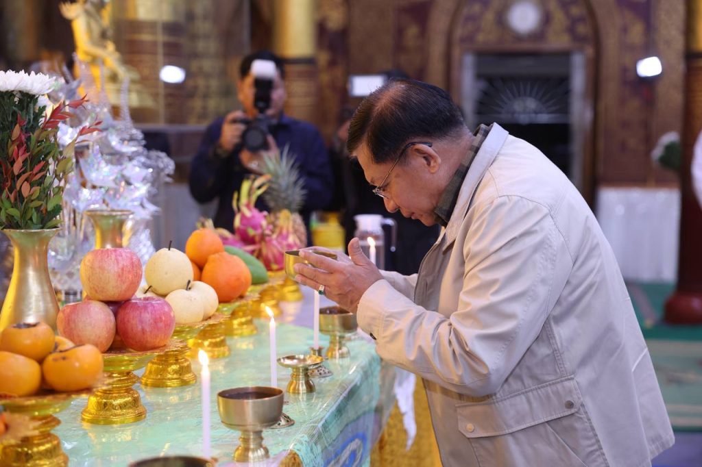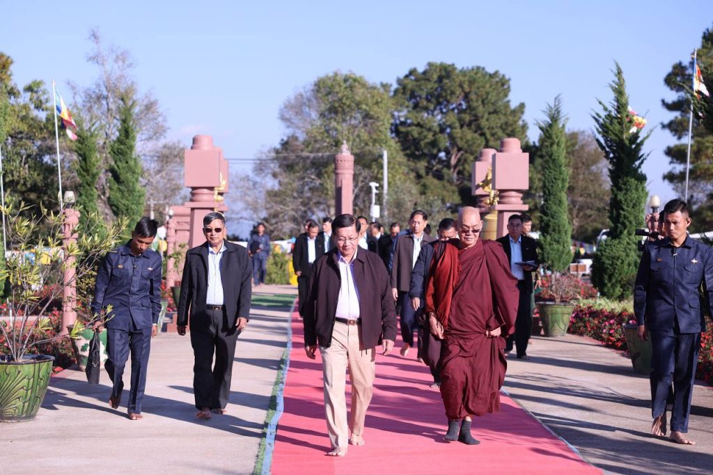 ယာယီသမ္မတနှင့် အဖွဲ့ဝင်များသည် ညပိုင်းတွင် ကျိုင်းတုံမြို့ကျက်သရေဆောင် မဟာမြတ်မုနိဘုရားကြီးသို့ သွားရောက်ဖူးမြော်ကြကြပြီးနောက် ဘုရားကြီးအတွက် ဘက်စုံအလှူတော်ငွေများကို ပေးအပ်လှူဒါန်းခဲ့ပြီး ဘုရားကြီး ဧည့်သည်တော် မှတ်တမ်းစာအုပ်တွင် လက်မှတ် ရေးထိုးပူဇော်သည်။