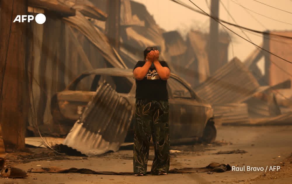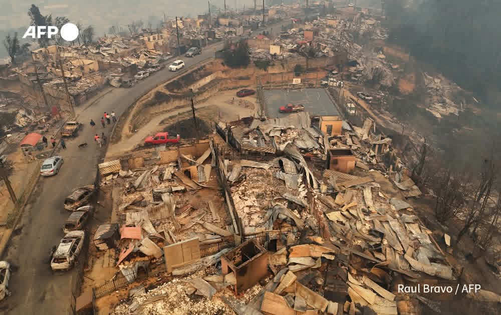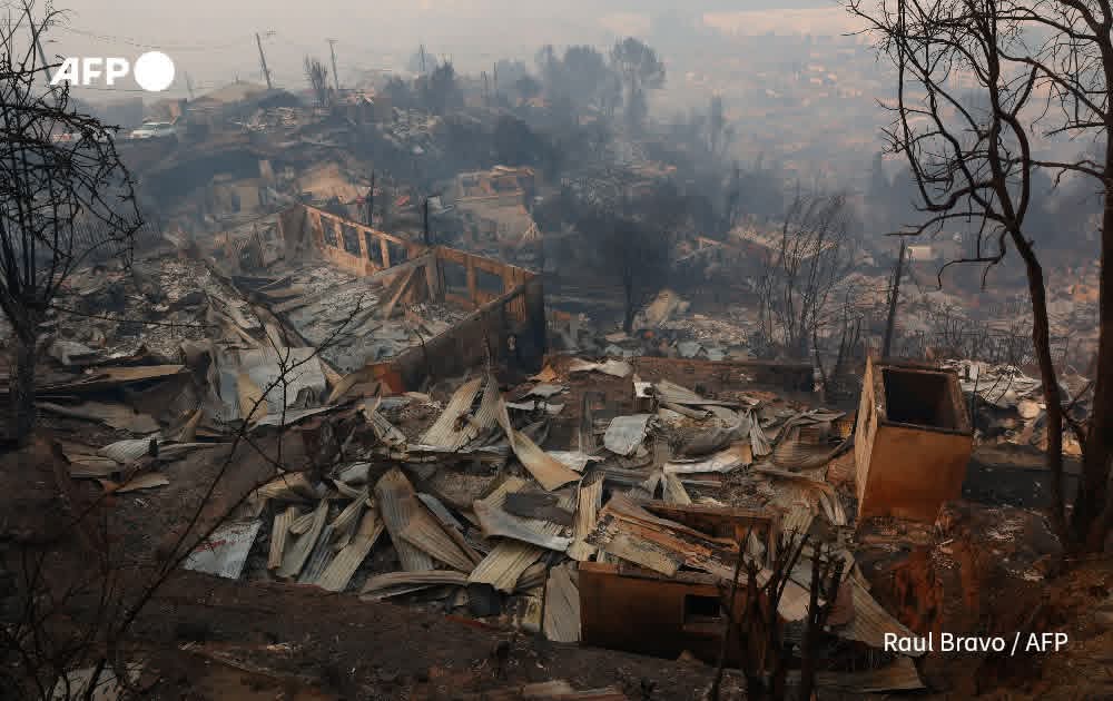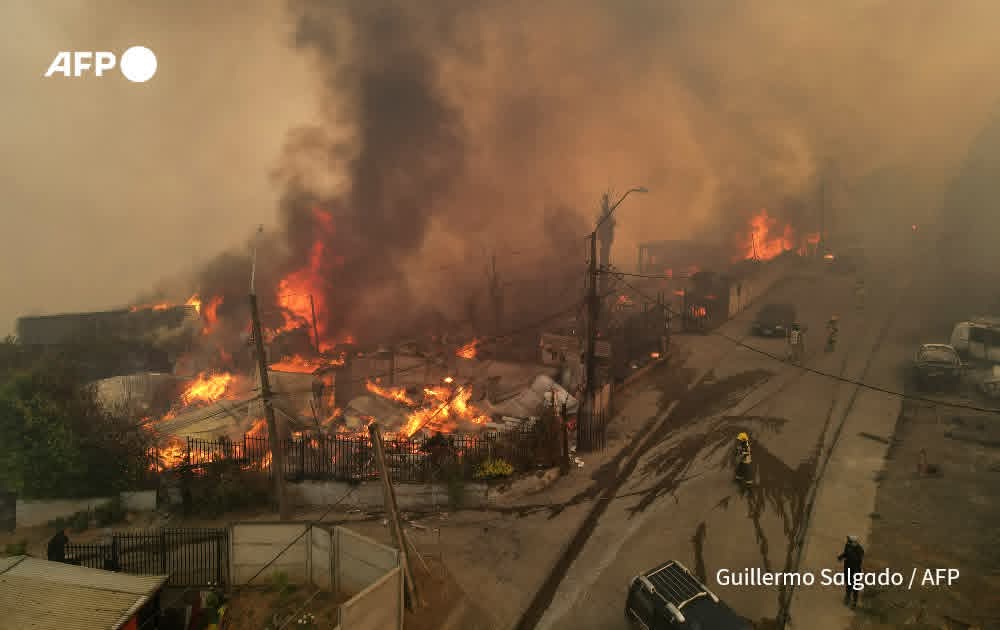 မြို့တော် ဆန်တီယာဂို၏ တောင်ဘက် ၅၀၀ ကီလိုမီတာ (မိုင် ၃၀၀) ခန့်အကွာရှိ နျူဘဲ (Nuble) နှင့် ဘိုင်အိုဘိုင်အို (Biobio) ဒေသတို့တွင် ပြင်းထန်သော လေပြင်းများနှင့် ပူပြင်းသည့် ရာသီဥတုကြောင့် တောမီးများ နှစ်ရက်ဆက်တိုက် ကူးစက်ပျံ့နှံ့လျက်ရှိရာ လက်ရှိတွင် ဒေသခံ ၅၀,၀၀၀ ကျော် နေရပ်စွန့်ခွာ တိမ်းရှောင်နေကြရသည်။