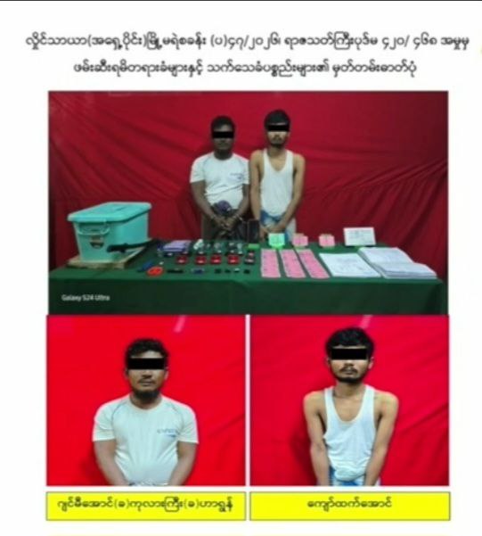 ၎င်းတို့နှင့်အတူ ပြလုပ်ပြီးသား မှတ်ပုံတင် (၉) ခု၊ ပြုလုပ်ဆဲ မှတ်ပုံတင် (၈)ခု၊ သန်းခေါင်စာရင်း (၄)ခု၊ရုံးတံဆိပ် (၁၂)ခုနှင့် ဆက်စပ်ပစ္စည်းများ သိမ်းဆည်း ဖမ်းဆီးရမိခဲ့ကြောင်း သိရသည်။