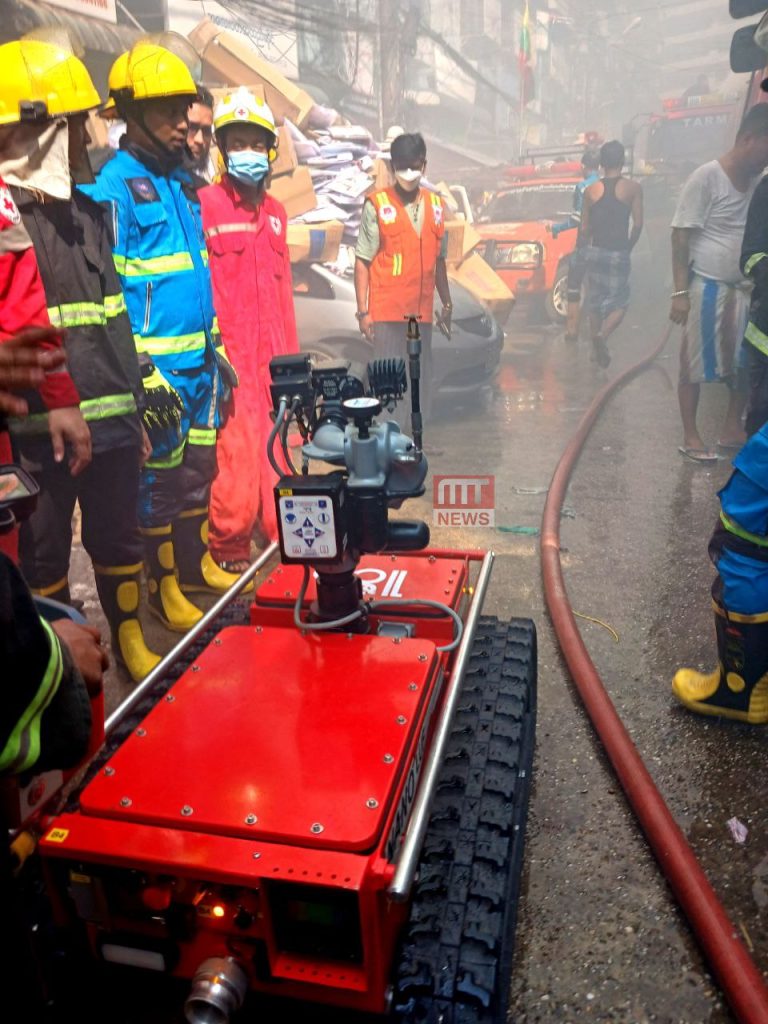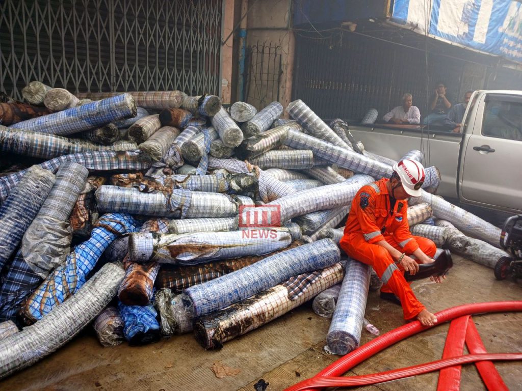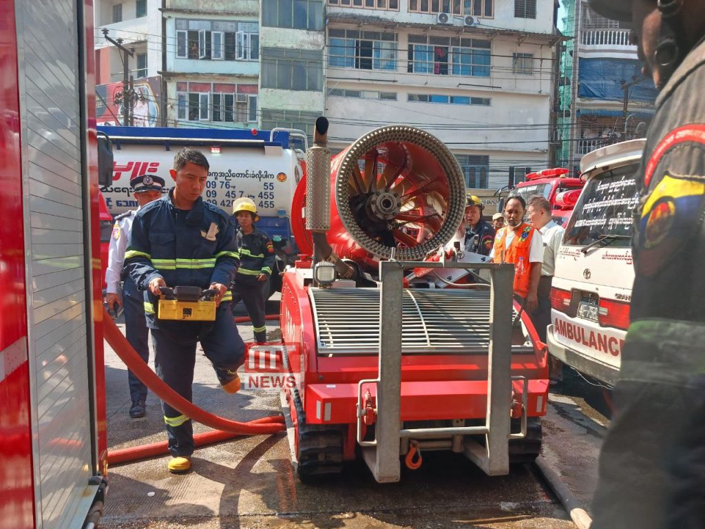 အထည်ဆိုင်မီးလောင်မှုကို မီးငြှိမ်းသတ်ယာဥ် ၂၆ စီး၊ ရေသယ်ယာဥ် ၁၃ စီး၊ အထောက်အကူပြုယာဥ် ၆ စီး၊ ကွပ်ကဲမှုယာဥ် ၉ စီးနှင့် သန္ဓေအရန် မီးသတ်တပ်ဖွဲ့ဝင် ၄၀၀ ကျော်ဖြင့် ငြှိမ်းသတ်ခဲ့ကြောင်း သိရသည်။