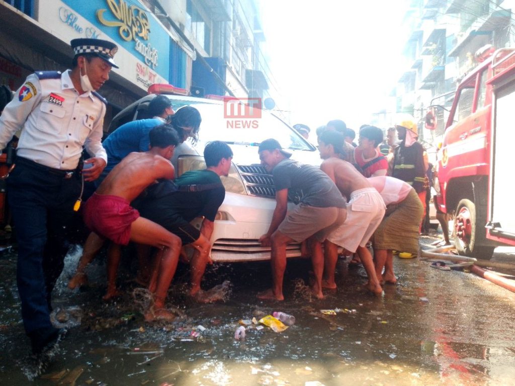 ထို့အပြင် မီးလောင်မှုကို လာရောက်၍ ဝိုင်းဝန်ငြှိမ်းသတ်သော ကိုပူတူးနှင့် ညီအစ်ကိုများ ပရဟိတအသင်းမှ အသင်းဝင် အသက် ၂၉ နှစ်အရွယ် ကိုကောင်းမြတ်မိုးမှာ မီးလောင်ပြင်တွင် ဝိုင်းဝန်းကူညီစဥ် ဘယ်ဘက်လက်ကောက်ဝတ်သွေးကြောပြတ်ဒဏ်ရာရရှိခဲ့သဖြင့် ယင်းအသင်း၏ လူနာတင်ယာဥ်ဖြင့် ရန်ကုန်ပြည်သူ့ဆေးရုံကြီးသို့ ပို့ဆောင်ကုသခဲ့ကြောင်း သိရသည်။