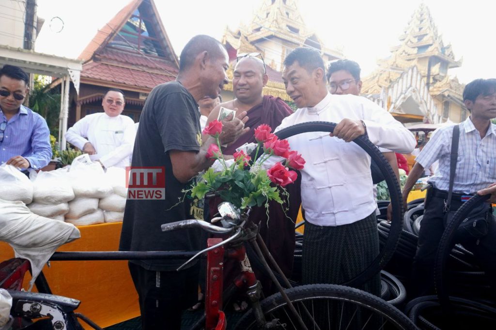 အဆိုပါလှူဒါန်းမှုကိုလည်း အနုပညာရှင်များဖြစ်သည့် သရုပ်ဆောင် စိုးရန်အောင်၊ သရုပ်ဆောင် သက်သခင်၊ သရုပ်ဆောင်နိုင်လူ၊ အဆိုတော် ကေသီနွယ်စသူများပါဝင်ခဲ့ပြီး ဆိုက္ကားတာယာများလှူဒါန်းခြင်းအပြင် အခြေခံစားကုန်များဖြစ်သည့် ဆန်၊ ဆီ၊ အာလူး၊ ကြက်သွန်နီ၊ ဂေါ်ဖီပွင့်၊ ခရမ်းသီး၊ ဘူးသီး၊ ငါး၊ ကုလားပဲ၊ ခေါက်ဆွဲခြောက်၊ ကော်ဖီမစ်၊ သွားတိုက်ဆေး၊ ဆပ်ပြာခဲ စသည်များ ပေးဝေလှူဒါန်းခဲ့ကြသည်။