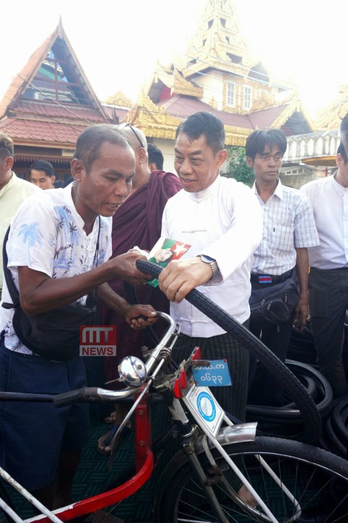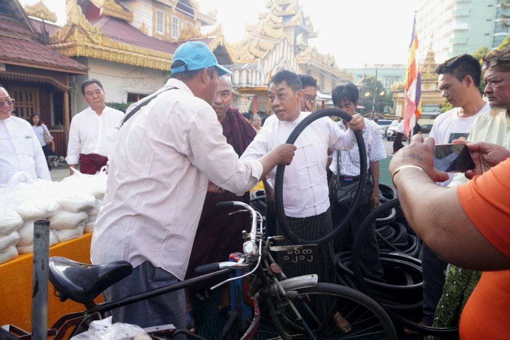 အဆိုပါ စက်ဘီးတာယာများ ရောင်းချပေးမှုကို တာမွေမြို့နယ်၊ ပင်ရွှေညောင်လမ်းရှိ အလိုတော်ပြည့်ဘုန်းကြီးကျောင်းဝန်းအတွင်း ဇန်နဝါရီ ၂၀ ရက်၊ ညနေ ၄ နာရီတွင် စတင်ပြုလုပ်ခဲ့ပြီး အခြားအလှူရှင်များကလည်း ဆန်၊ ဆီ၊ ဟင်းသီးဟင်းရွက်များနှင့် မုန့်များ ပါဝင်လှူဒါန်းခဲ့ကြောင်း သိရသည်။
