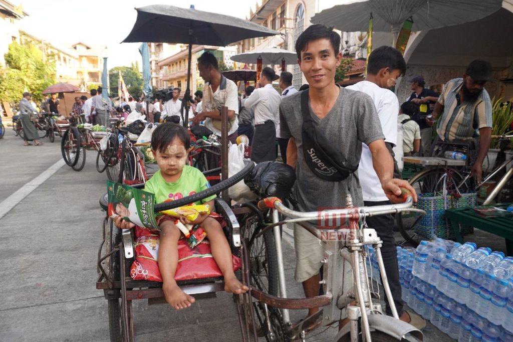 တာမွေမြို့နယ်မှ အနှေးယာဉ်လုပ်သားတစ်ဦးက ” နေ့လယ် ၂ နာရီလောက်ထဲက လာတန်းစီတာပါ။ တာယာတစ်လုံး တစ်သောင်းကျပ်ကို အကြွေးစနစ်နဲ့ ရောင်းပေးတယ်။ အခြားအလှူရှင်တွေကလည်း ဆန်နဲ့ ဟင်းသီးဟင်းရွက်တွေလှူကြပါတယ်။ နာမည်နဲ့ မှတ်ပုံတင်နံပါတ်ရေးရပြီး လက်မှတ်ထိုးရပါတယ်။ ကျွန်တော်တို့ ဆိုက္ကားနင်းတဲ့ အနှေးယာဉ်လုပ်သားတွေကို သီးသန့်ရောင်းပေးတာပါ ” ဟု ပြောသည်။