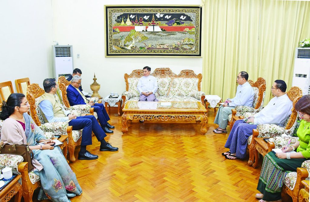 စီးပွားရေးနှင့် ကူးသန်းရောင်းဝယ်ရေးဝန်ကြီးဌာန ပြည်ထောင်စုဝန်ကြီး ဦးချစ်ဆွေသည် မြန်မာနိုင်ငံဆိုင်ရာ အိန္ဒိယနိုင်ငံသံအမတ်ကြီး H.E. Mr. Abhay Thakur နှင့် အိန္ဒိယနိုင်ငံ ကူးသန်းရောင်းဝယ်ရေးနှင့် စက်မှုဝန်ကြီးဌာန ကူးသန်းရောင်းဝယ်ရေးဦးစီးဌာန Additional Secretary Sh. Nitin Kumar Yadav တို့ ဦးဆောင်သော ကိုယ်စားလှယ်အဖွဲ့အား ယမန်နေ့တွင် နေပြည်တော်တွင် လက်ခံတွေ့ဆုံခဲ့သည်။