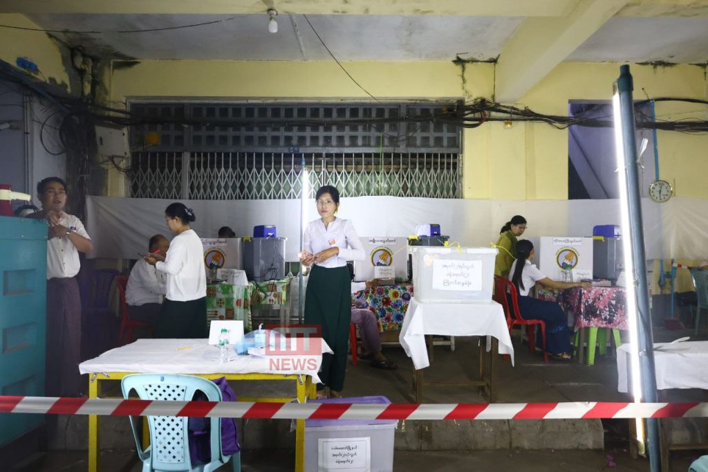 ထို့နောက် လမ်းမတော်နေ ပြည်သူများက မဲရုံစတင်ဖွင့်လှစ်ကတည်းက ဆန္ဒမဲလာရောက်ပေးလျက်ရှ်ိသည်။