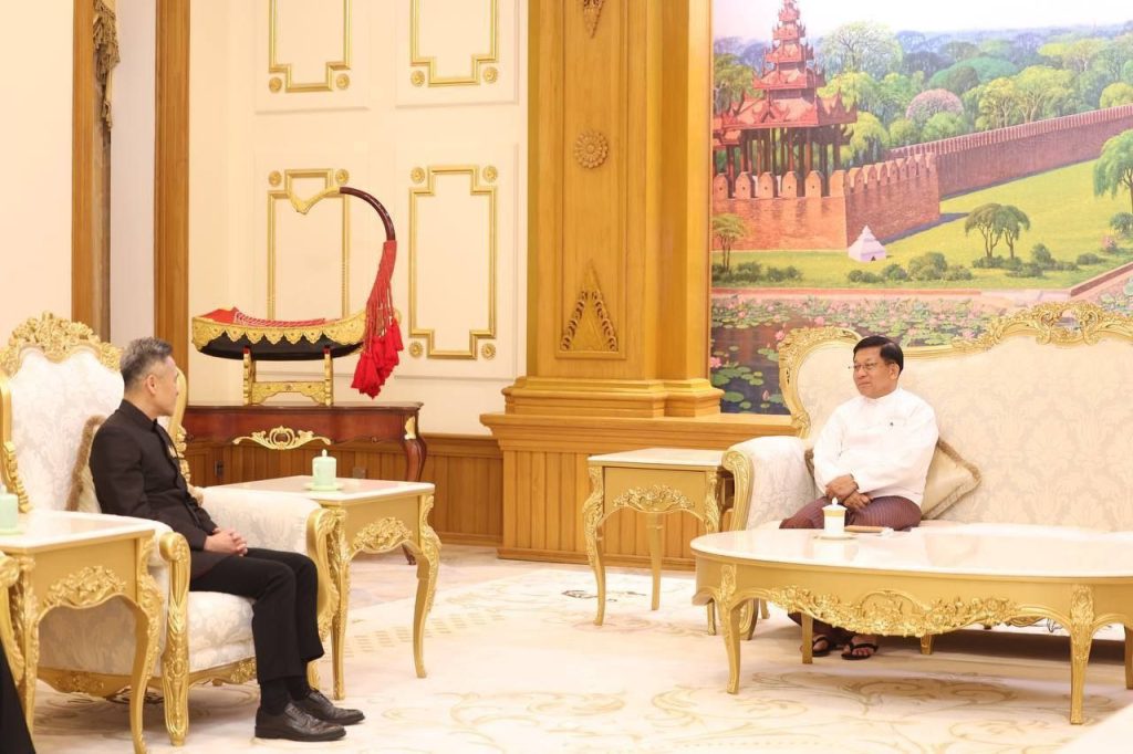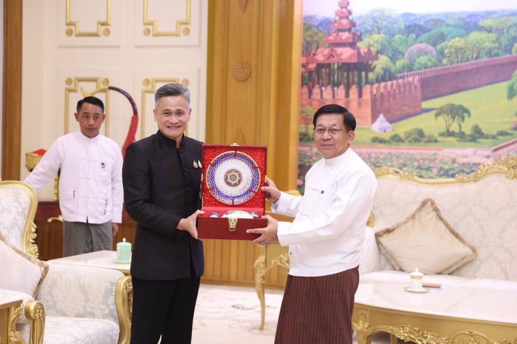နိုင်ငံတော်ယာယီသမ္မတ နိုင်ငံတော်လုံခြုံရေးနှင့် အေးချမ်းသာယာရေးကော်မရှင် ဥက္ကဋ္ဌ ဗိုလ်ချုပ်မှူးကြီးမင်းအောင်လှိုင်သည် တာဝန်ပြီးဆုံး၍ ပြန်လည်ထွက်ခွာမည့် မြန်မာနိုင်ငံဆိုင်ရာ ထိုင်းနိုင်ငံသံအမတ်ကြီး H.E. Mr. Mongkol Visiststump အား ယနေ့တွင် နေပြည်တော်ရှိ အမျိုးသားကာကွယ်ရေးနှင့် လုံခြုံရေးကောင်စီရုံး၊ ဧည့်ခန်းမ၌ လက်ခံတွေ့ဆုံသည်။