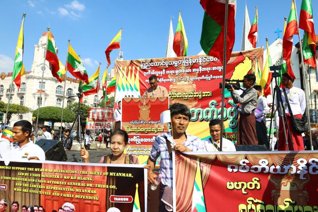 အပြည်ပြည်ဆိုင်ရာတရားရုံး (ICJ) တွင် သွားရောက်ဖြေရှင်းနေသော မြန်မာကိုယ်စားလှယ်အဖွဲ့ကို ထောက်ခံဂုဏ်ပြုပွဲနှင့် ဂမ်ဘီယာနိုင်ငံ၏ မဟုတ်မမှန်စွပ်စွဲချက်များကို ကန့်ကွက်ရှုတ်ချသည့် ဆန္ဒထုတ်ဖော်ပွဲကို ရန်ကုန်မြို့၊ မဟာဗန္ဓုလပန်းခြံရှေ့တွင် ဇန်နဝါရီ ၂၇ ရက်၊ နေ့လယ် ၂ နာရီတွင် ပြုလုပ်ခဲ့ပြီး သံဃာတော်နှင့် လူပုဂ္ဂိုလ်စုစုပေါင်း ၁၀၀၀ ကျော်တက်ရောက်ခဲ့ကြောင်း သိရသည်။