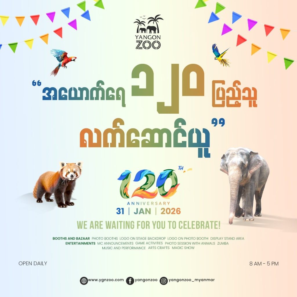 အရှေ့တောင်အာရှနိုင်ငံများတွင် သက်တမ်းအရှည်ကြာဆုံးတိရစ္ဆာန်ဥယျာဉ်တစ်ခုဖြစ်သည့် ရန်ကုန်တိရစ္ဆာန်ဥယျာဥ် နှစ် ၁၂၀ ပြည့် အထိမ်းအမှတ်ပွဲတော်အား ၅ ရက်ကြာ ခမ်းနားစွာပြုလုပ်မည်ဖြစ်ကြောင်း သိရသည်။