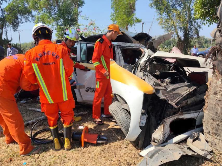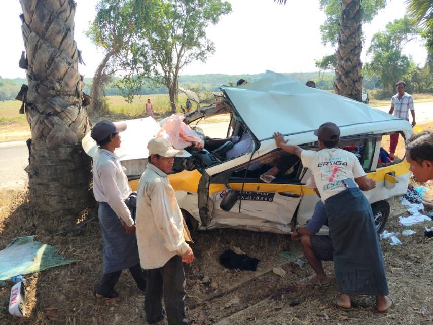 ဖြစ်စဥ်မှာ ရန်ကုန်ဘက်မှ နေပြည်တော်ဘက်သို့ ကလေးနှစ်ဦးအပါအဝင် လေးဦးလိုက်ပါလာသော Toyota Probox အဖြူရောင် အငှားယာဥ်၏ နောက်ပိုင်းကို လူလေးဦးလိုက်ပါလာသည့် Toyota Levin အနက်ရောင်ယာဥ်က ကျော်တက်မောင်းနှင်ကာ ဝင်တိုက်သဖြင့် Probox ယာဥ် အရှိန်မထိန်းနိုင်ဘဲ လမ်းလယ်ကျွန်းရှိ ထန်းပင်ကို ဝင်တိုက်ခဲ့ခြင်းဖြစ်ကြောင်း သိရသည်။