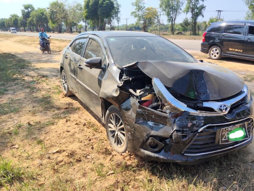 ယာဥ်တိုက်မှုကြောင့် Probox ယာဥ် ခေါင်းပိုင်းကြေမွပျက်စီးခဲ့ပြီး Levin အနက်ရောင်ယာဥ်တွင်လည်း ယာဥ်၏ဘယ်ဘက်နှင့် ညာဘက်ခြမ်းပျက်စီးခဲ့သည်။
