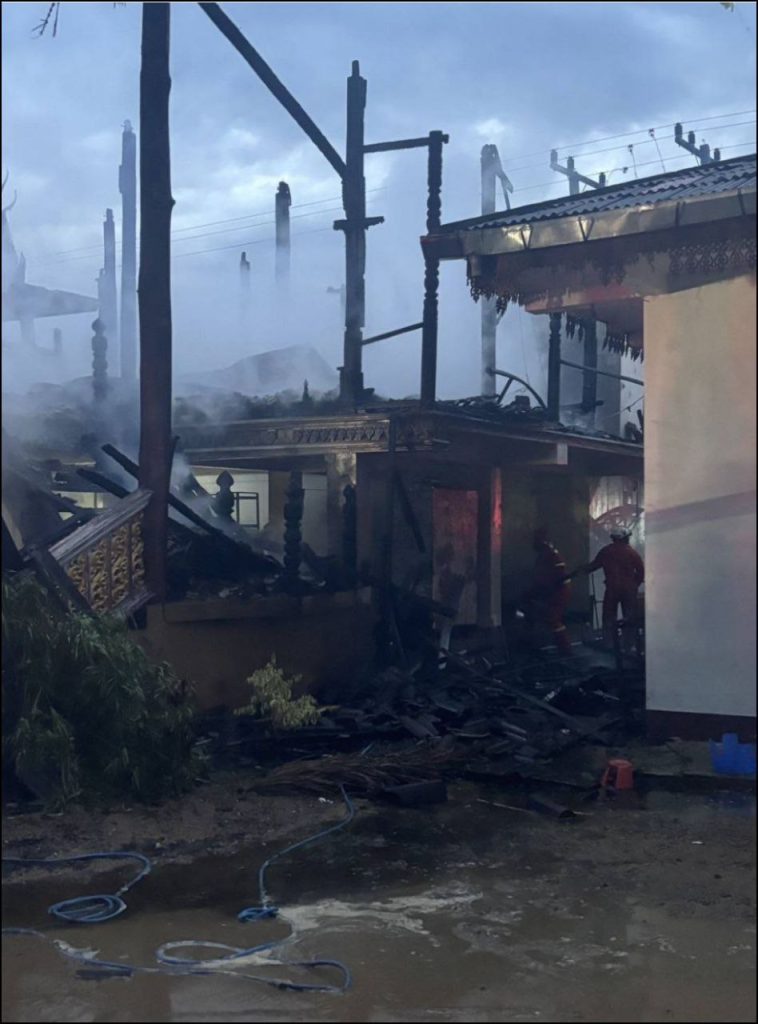 မီးသတ်သမားများသည် ကျွန်းသစ်နှင့် အုတ်အင်္ဂတေများဖြင့် တည်ဆောက်ထားသည့် မြန်မာမှုဗိသုကာလက်ရာဖြစ်သော ပဓာနဝိဟာရ (ကျောင်းဆောင်မကြီး) တစ်ခုလုံးကို ပြင်းထန်စွာ ဝါးမြိုနေသည့် မီးတောက်များကို ရင်ဆိုင်ငြှိမ်းသတ်ခဲ့ရသည်။ နှစ်နာရီကျော်ကြာ ကြိုးပမ်းခဲ့ပြီးနောက်တွင် မီးကို ထိန်းချုပ်နိုင်ခဲ့သည်။
