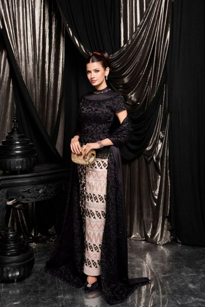 “မြန်မာမိန်းခလေးတစ်ဦးရဲ့ ဖြူစင်ရှင်းသန့်မှု၊ ကျက်သရေရှိမှုတို့ကို ကိုယ်စားပြုတဲ့ အဖြူရောင်လေးနဲ့ မိမိကိုယ်ကိုယ်ယုံကြည်မှု၊ ခန့်ညားမှုတို့ကို ကိုယ်စားပြုပြီး ရတနာတွေထဲမှာ တန်ဖိုးကြီးမားတဲ့ နီလာရောင်လေးကို Crystal, ဖန်ဆစ်, ဖန်ချောင်းများစွာဖြင့် အနုစိပ်ဖန်တီးပုံဖော်ပေးထားပါတယ်။ ၂၀၂၆ အကယ်ဒမီပွဲတက်ဖို့ ဝါဆို့အတွက် သေချာလေးအချိန်ပေးပြီး ချုပ်လုပ်ပေးထားပါတယ်”လို့ ဒီဇိုင်နာ Zippy က ပြောပါတယ်။