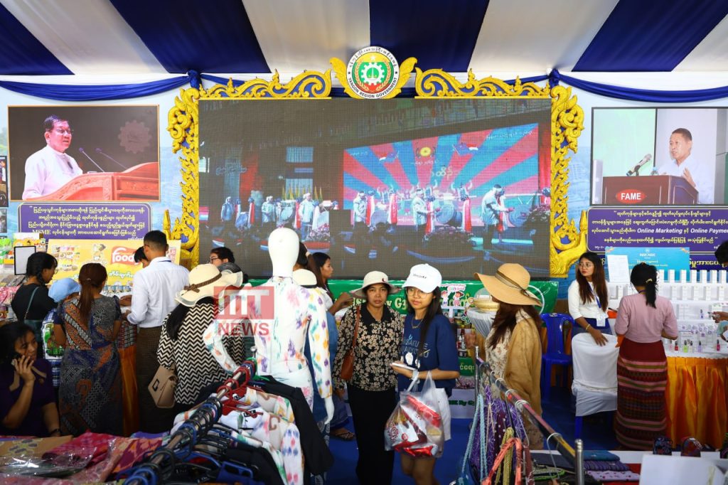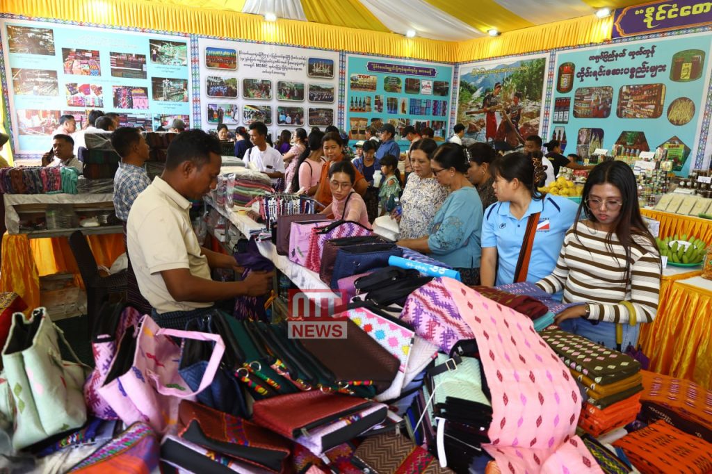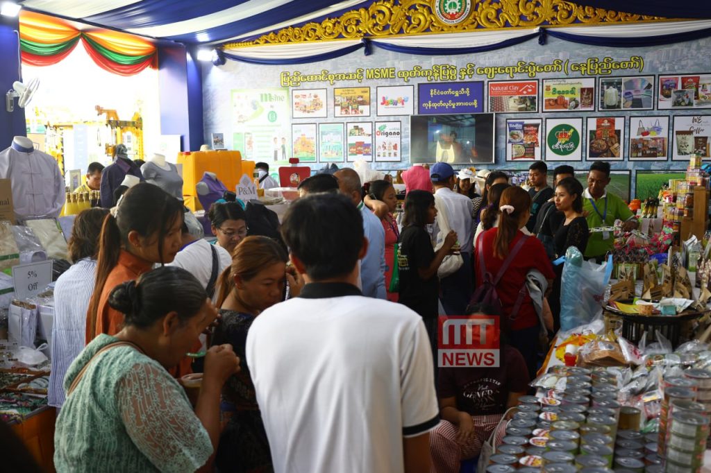 ရက်ထပ်တိုး၍ ဖေဖော်ဝါရီ ၁၄ ရက်အထိ ကျင်းပသွားမည့် ပြည်ထောင်စုအဆင့် MSME ထုတ်ကုန်ပြပွဲနှင့် ဈေးရောင်းပွဲတော်မြင်ကွင်းများကို ဖေဖော်ဝါရီ ၁၂ ရက်(ပြည်ထောင်စုနေ့)တွင် တွေ့မြင်ရသည်။