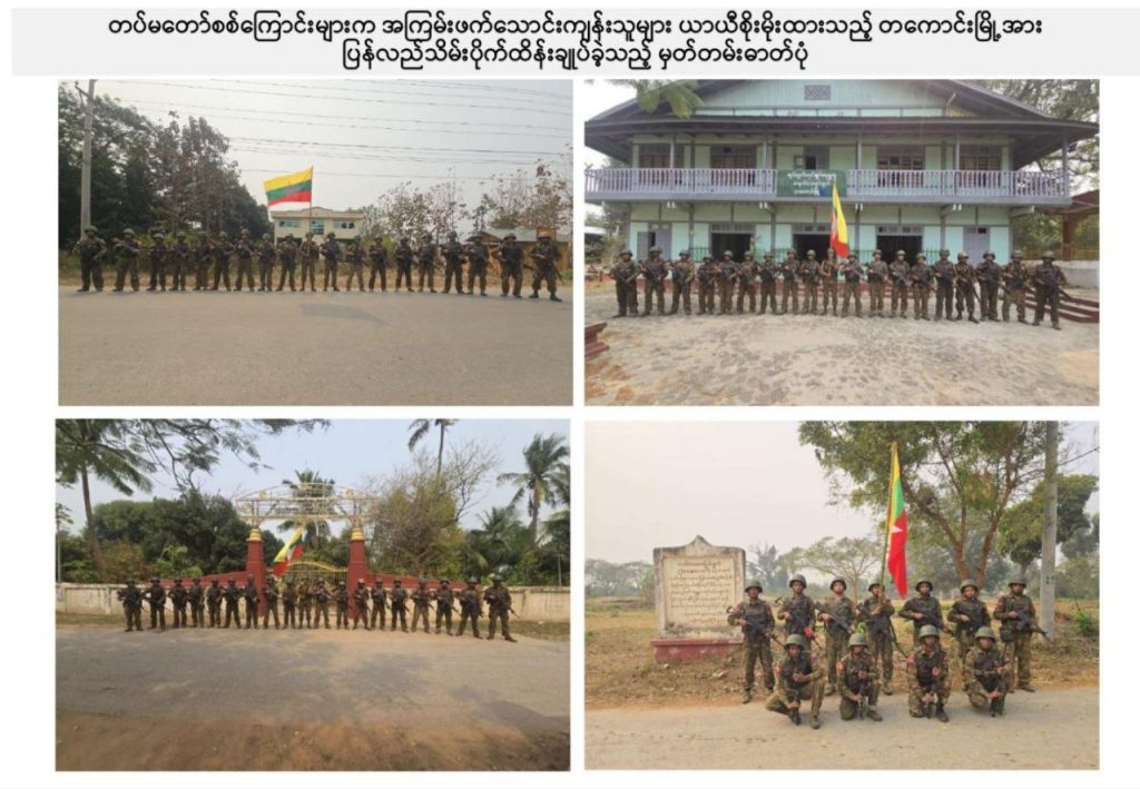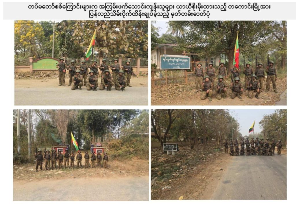NUG လက်ဝေခံ PDF များ ယာယီစိုးမိုးထားသည့် တကောင်းမြို့အား တပ်မတော်စစ်ကြောင်းများက ယနေ့ ပြန်လည်သိမ်းပိုက်ထိန်းချုပ်နိုင်ခဲ့ကြောင်း အမျိုးသားကာကွယ်ရေးနှင့်လုံခြုံရေးကောင်စီ၏ သတင်းထုတ်ပြန်ရေးအဖွဲ့မှ ထုတ်ပြန်ထားသည်။