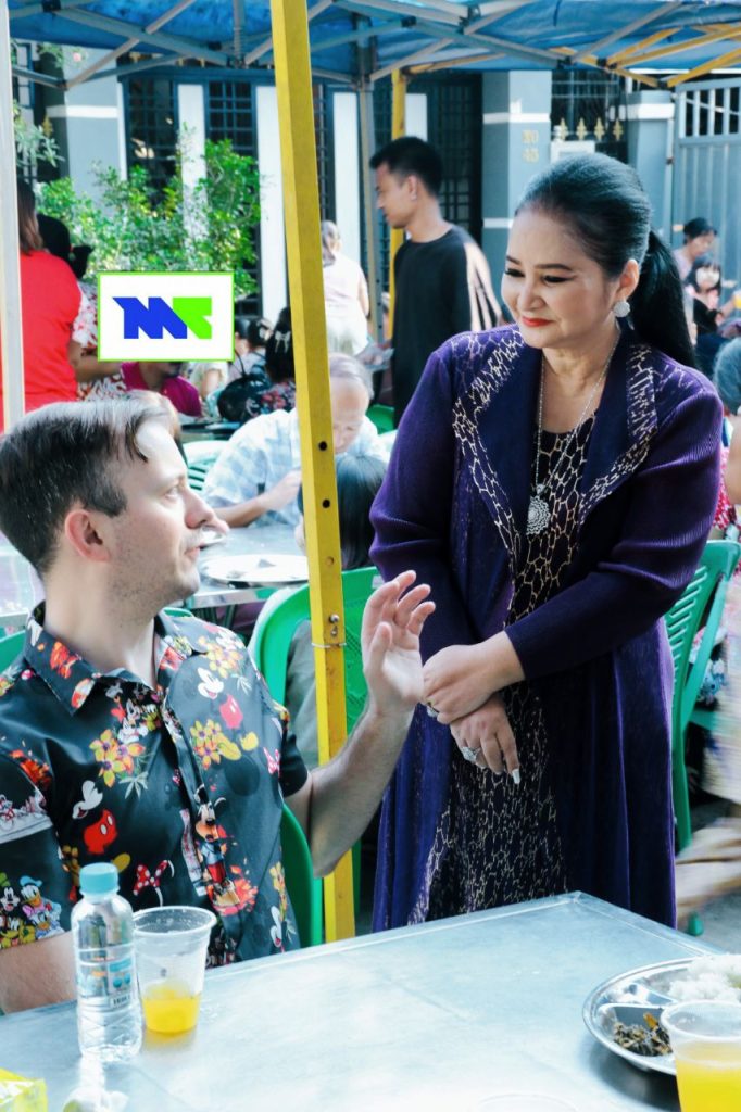 “လာမယ့် မတ်လ ၁၉ ရက်နေ့မှာ သိန်း ၆၅၀၀ တန် လမ်းဖွင့်ပွဲကြီး လုပ်ဖို့ရှိပါတယ်။ ကျိုက္ကဆံဘုရားရင်ပြင်မှာလည်း အန်တီတစ်ဦးတည်းလှူတာပါ။ အန်တီက လှူနေရင်ကို ကြည်နူးပီတိဖြစ်ရပါတယ်”လို့ သူကဆက်ပြောပါတယ်။