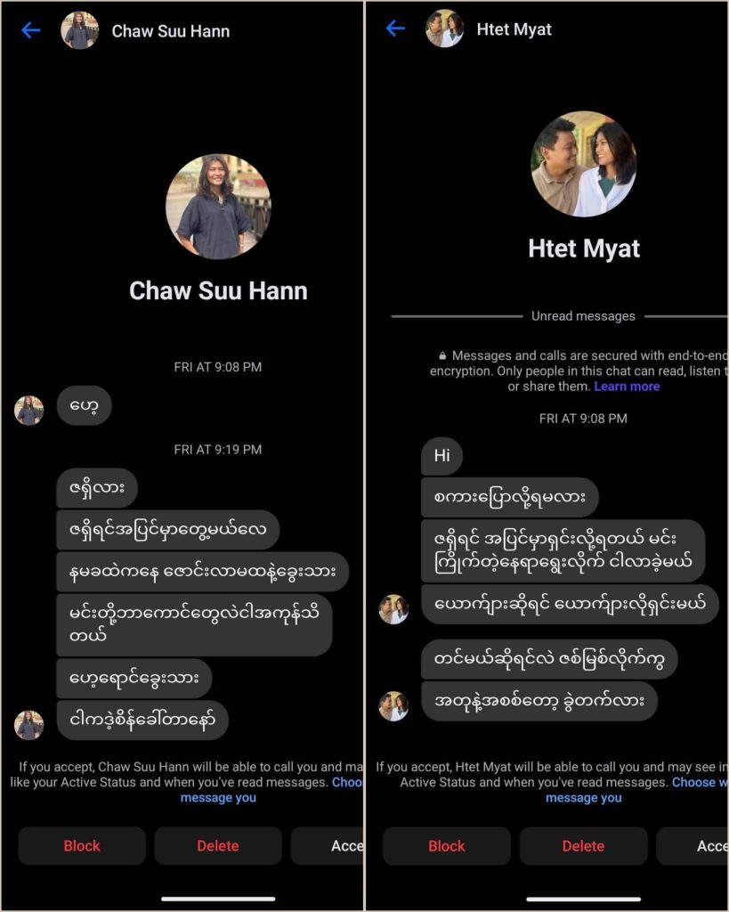 ထိုသို့ တိုင်ကြားသူ ရန်နိုင်ထွန်းကို PDF မ ချောစုဟန်နှင့် လင်ဖြစ်သူထက်မြတ်က စာပို့ ခြိမ်းခြောက်မှုများလည်း ပြုလုပ်နေသည်ဟု သိရသည်။