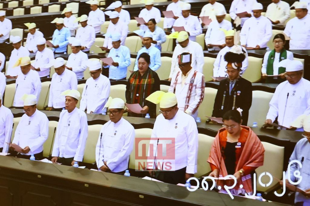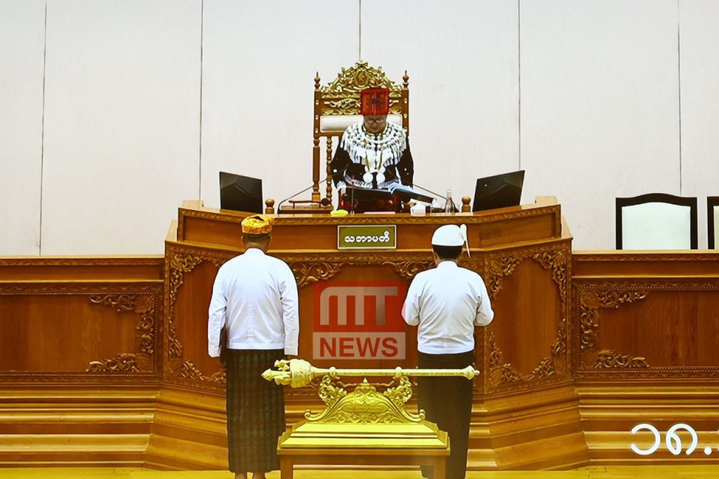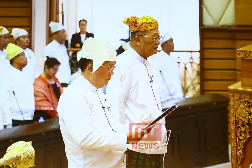 ထို့နောက် အမျိုးသားလွှတ်တော် ဥက္ကဋ္ဌနှင့် ဒုတိယဥက္ကဋ္ဌတို့သည် အမျိုးသားလွှတ်တော် သဘာပတိရှေ့မှောက်တွင် ကတိသစ္စာပြု၊ လက်မှတ်ရေးထိုးခဲ့ကြသည်။