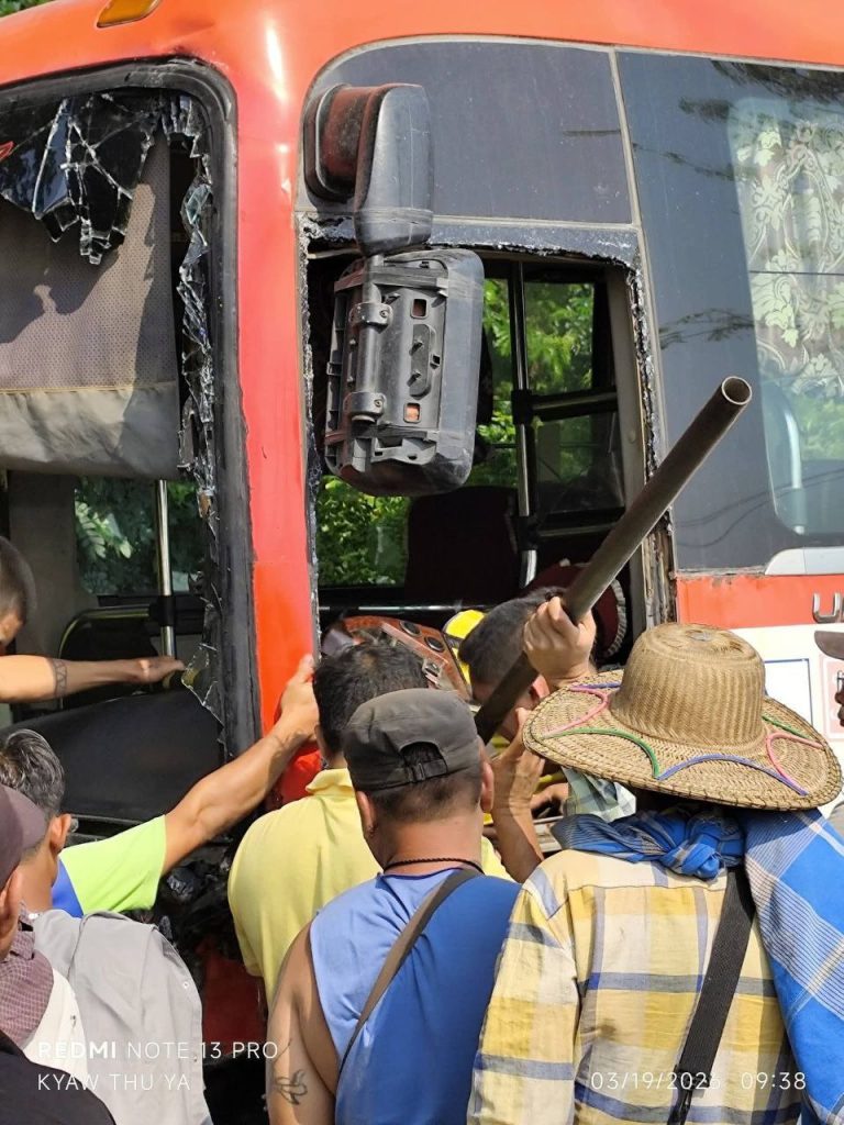 ယာဉ်မောင်းနှစ်ဦးအနက် တစ်ဦးမှာ ယာဉ်အတွင်းညပ်နေလို့ မီးသတ်တပ်ဖွဲ့တာဝန်ရှိသူတွေက အန္တရာယ်ကင်းစွာ ကူညီ ကယ်ဆယ်ပေးခဲ့ပြီး ဓနုဖြူဆေးရုံဆီ ပို့ဆောင်ပေးခဲ့တယ်လို့ သိရပါတယ်။