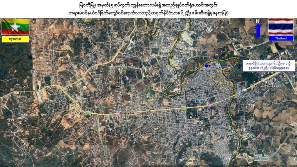 မြန်မာနိုင်ငံအတွင်း တရားမဝင် နယ်စပ်ဖြတ်ကျော်ဝင်ရောက်နေထိုင်နေသည့် တရုတ်နိုင်ငံသား ၆၂ ဦးအား မြဝတီမြို့နယ်၊ အမှတ် (၅) ရပ်ကွက်၊ ကျွန်းတောလမ်းရှိ အထည်ချုပ်စက်ရုံဟောင်းအတွင်း ဖမ်းဆီးရမိခဲ့သည်။