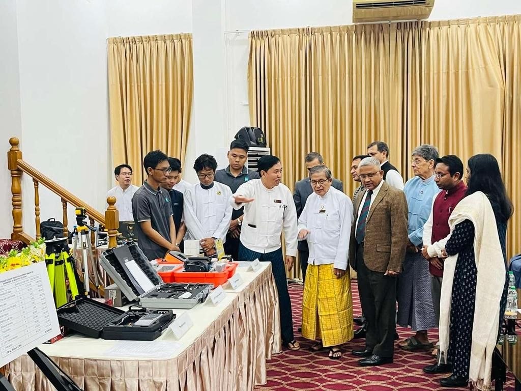 အိန္ဒိယနိုင်ငံက လှူဒါန်းသည့် စက်ယန္တရားနှင့် ပစ္စည်းကိရိယာများတွင် မြေကြီးထိုးဖောက်စစ်ဆေးရေး ရေဒါစက် (Ground Penetr-ation Radar)၊ Lidar စကန်နာပါသော တက်ဘလက် (Tablet /iPad with Lidar Scanner)ı လေဗယ်တိုင်းတာရေး လေဆာစက် (Levelling Laser)၊ ဒစ်ဂျစ်တယ် ရေညှိတန်းတိုင်းကိရိယာ ( ၁ မီတာ) (Digital Spirit Level 1M Length)၊ အတိုင်းအတာတိုင်းကိရိယာ (Vernier Clipper)၊ အကွာအဝေးတိုင်းတာရေး လေဆာစက် အများဆုံးအကွာအဝေး(Distance Laser Max)၊ ကွန်ကရစ်ခိုင်ခံ့မှု စမ်းသပ်ဟမ်မား (Rebound Hammer)၊ တိုင်းတာရေးစက် (Total Station) (Computer)နှင့် ဆက်စပ်ပစ္စည်းများပါဝင်ပြီး ဘေးအန္တရာယ်မတိုင်မီနှင့် ဘေးအန္တရာယ်ဖြစ်ပွားပြီးနောက် အဆောက်အအုံအကဲဖြတ်ခြင်းများအတွက် အသုံးပြုနိုင်သည့် စက်ယန္တရားနှင့် ပစ္စည်းကိရိယာများ ဖြစ်ကြောင်း သိရသည်။