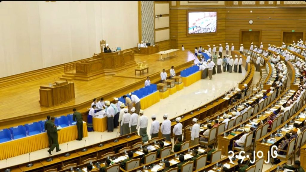 ယနေ့ ကျင်းပသော အစည်းအဝေးကို ပြည်ထောင်စုလွှတ်တော်ကိုယ်စားလှယ် စုစုပေါင်း ၅၈၆ ဦးအနက် ၅၈၄ ဦး တက်ရောက်သည့်အတွက် ပြည်ထောင်စုလွှတ်တော် ဥပဒေဆိုင်ရာ ပုဒ်မ ၁၉ ၊ နည်းဥပဒေ ၁၄ ၊ နည်းဥပဒေခွဲ (ဆ)တို့အရ နိုင်ငံတော်သမ္မတ ရွေးချယ်တင်မြှောက်ပွဲ အထမြောက်ကြောင်းနှင့် စတင်ကျင်းပကြောင်း ပြည်ထောင်စုလွှတ်တော် နာယက ဦးအောင်လင်းဒွေးက အတည်ပြုကြေညာခဲ့သည်။