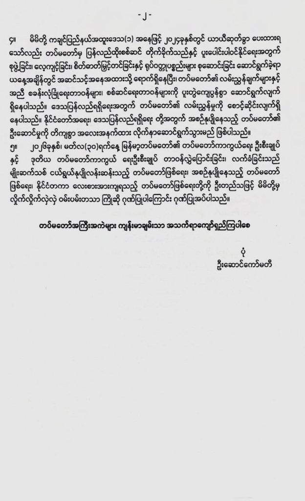 အထက်ပါ တင်ပြမှုများအပြင် ၂ဝ၂၆ခုနှစ်၊ မတ်လ (၃ဝ)ရက်နေ့တွင် မြန်မာ့တပ်မတော်၏ တပ်မတော်ကာကွယ်ရေး ဦးစီးချုပ်နှင့် ဒုတိယ တပ်မတော်ကာကွယ် ရေးဦးစီးချုပ် တာဝန်လွှဲပြောင်းခြင်း၊ လက်ခံခြင်းသည် မျိုးဆက်သစ် ငယ်ရွယ်နုပျိုလန်းဆန်းသည့် တပ်မတော်ဖြစ်ရေး၊ အစဉ်နုပျိုနေသည့် တပ်မတော်ဖြစ်ရေး၊ နိုင်ငံတကာ လေးစားအားကျရသည့် တပ်မတော်ဖြစ်ရေးတို့ကို ဦးတည်သဖြင့် မိမိတို့မှ လှိုက်လှိုက်လှဲလှဲ ဝမ်းပမ်းတသာ ကြိုဆိုဂုဏ်ပြုပါကြောင်းနှင့် တပ်မတော်အကြီးအကဲများ ကျန်းမာချမ်းသာ အသက်ရာကျော်ရှည်ကြပါစေဟုလည်း ဂုဏ်ပြုသဝဏ်လွှာဖြင့် ဆုမွန်ကောင်းတောင်းပေးခဲ့သည်ကို တွေ့ရသည်။