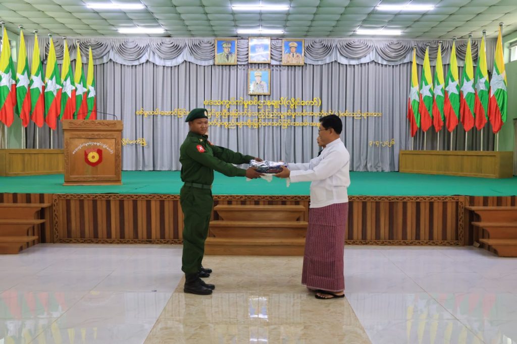 ထို့နောက် ဒေသကွပ်ကဲရေးမှူးက စစ်မှုထမ်းဆောင်ခြင်း အောင်မြင်စွာပြီးမြောက်ခဲ့သည့် ပြည်သူ့စစ်မှုထမ်းအမှတ်စဉ် (၁) မှ စစ်သည်များအား ဂုဏ်ပြုချီးမြှင့်ငွေပေးအပ်ရာ စစ်သည်များ ကိုယ်စား ကိုယ်စားလှယ်တစ်ဦးက လက်ခံရယူသည်။
