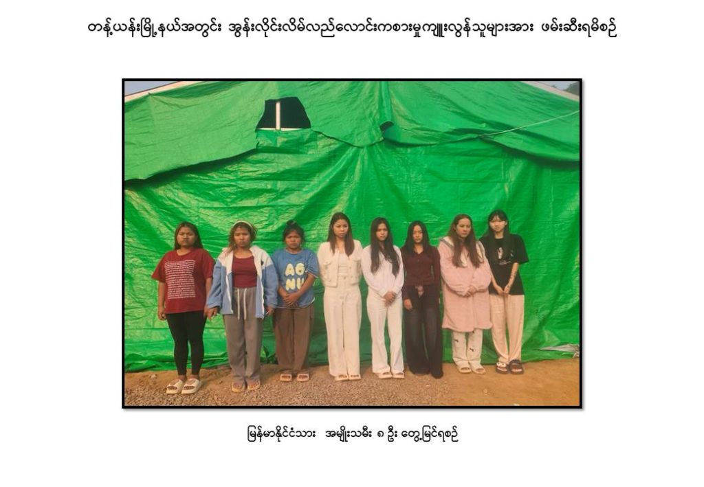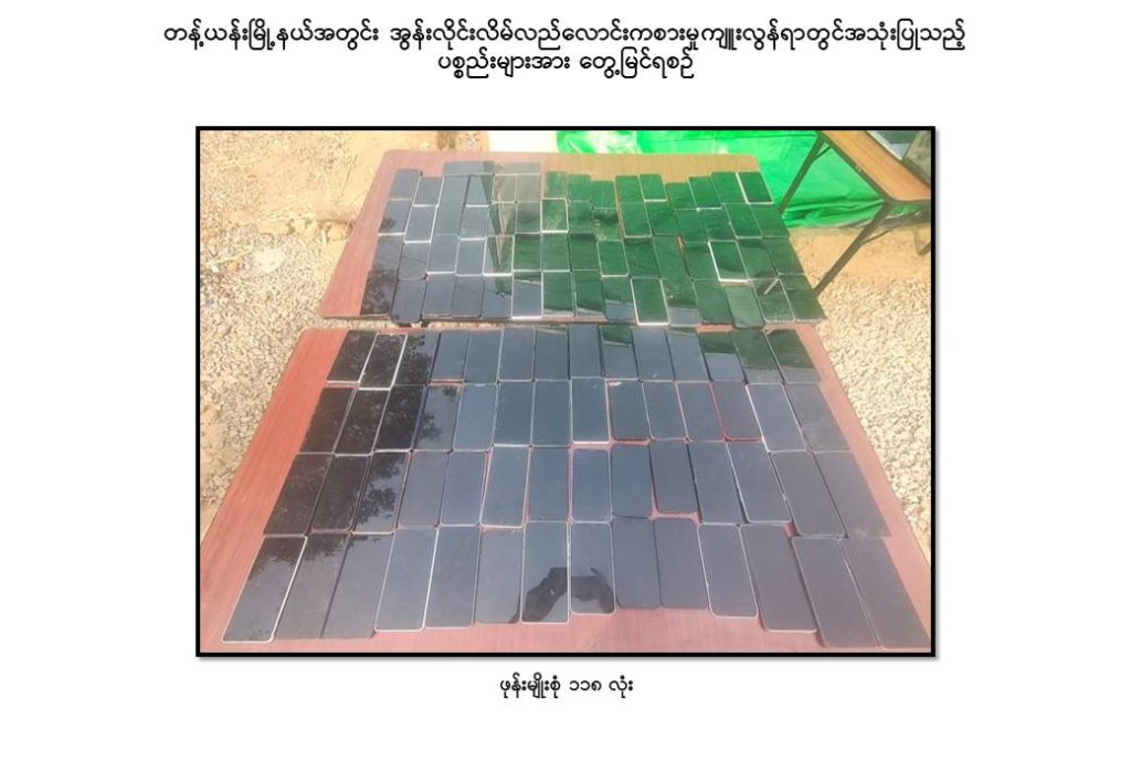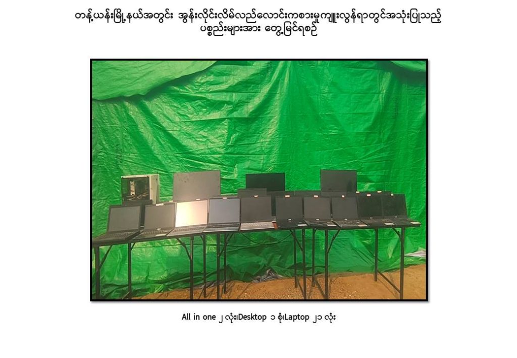 ထိုသို့ဆောင်ရွက်လျက်ရှိရာ အွန်လိုင်းလိမ်လည်လောင်းကစားမှုများကို လက်ခံနိုင်ခြင်းမရှိသည့် ဒေသခံပြည်သူများ၏ သတင်းပေးပို့မှုများနှင့်အတူ လုံခြုံရေးပူးပေါင်းအဖွဲ့များက အွန်လိုင်းလိမ်လည်လောင်းကစားမှုလုပ်ကိုင်သူများ ဝင်ရောက်အခြေပြုနေထိုင်ခြင်းမရှိစေရန်အတွက် ယမန်နေ့နံနက်ပိုင်းတွင် ရှမ်းပြည်နယ် (မြောက်ပိုင်း)၊ တန့်ယန်းမြို့နယ်အတွင်း လိုအပ်သည့် စုံစမ်းစစ်ဆေးခြင်းနှင့် ရှာဖွေဖော်ထုတ်ခြင်းများကို လုပ်ဆောင်စဉ် အဆိုပါမြို့၏ အရှေ့မြောက်ဘက် မီတာ ၂၅၀၀၀ ခန့်အကွာ ကောင်းဆန်ကျေးရွာအနီး၌ အွန်လိုင်းလိမ်လည်လောင်းကစားလုပ်ကိုင်သူများ နေထိုင်အသုံးပြုလျက်ရှိသည့် အိပ်ဆောင် ၃ လုံး၊ အလုပ်ရုံ ၂ လုံး၊ စားသောက်ခန်း ၁ လုံး၊ မီးဖိုဆောင် ၂ လုံးနှင့် ဆောက်လုပ်ဆဲ အဆောက်အအုံ ၁၅လုံး တို့ကို ရှာဖွေဖော်ထုတ်တွေ့ရှိခဲ့သည်။ ထိုအဆောက်အအုံများအတွင်းမှ အွန်လိုင်းလိမ်လည်လောင်းကစားမှုများလုပ်ကိုင်လျက်ရှိသည့် တရုတ်နိုင်ငံသား အမျိုးသား ၁၀၀ ဦး၊ အမျိုးသမီး ၁ ဦး၊ မြန်မာနိုင်ငံသား အမျိုးသား ၁၂ ဦး၊ အမျိုးသမီး ၈ ဦး၊ စုစုပေါင်း ၁၂၁ ဦးတို့အား All in One ကွန်ပျူတာ ၂ လုံး၊ Desktop ကွန်ပျူတာ ၁ စုံ၊ Laptop ၂၁ လုံး၊ ဖုန်းမျိုးစုံ ၁၁၈ လုံး၊ Starlink ၁၆ ခု၊ Wireless Router ၁၃ လုံး၊ မီးစက် ၂ လုံးတို့နှင့်အတူ ဖမ်းဆီးရမိခဲ့သည်။