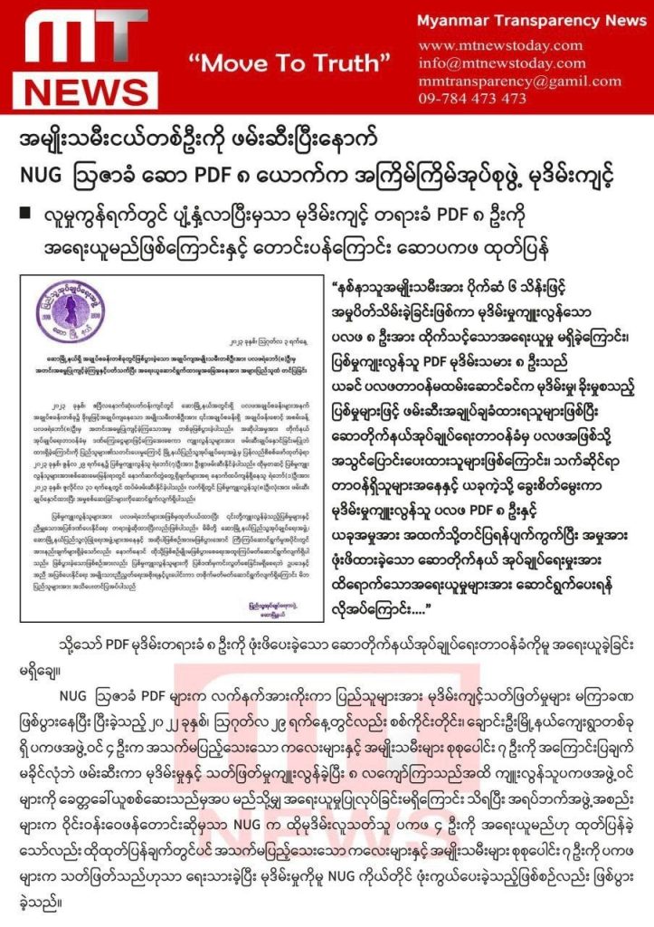 ထိုသို့ ပြည်သူများက ဆန္ဒပြတောင်းဆိုသဖြင့်သာ မုဒိမ်းမှုနှစ်ကြိမ်ကျူးလွန်ဖူးသူ ဆော PDF အား NUG တရားရုံးက ဧပြီ ၂ ရက်တွင် သေဒဏ်ချမှတ်လိုက်သော်လည်း အမှန်တကယ် သတ်ဖြတ်/မဖြတ်ကိုမူ NUG က အတည်ပြုထုတ်ပြန်လာခြင်း မရှိသေးချေ။