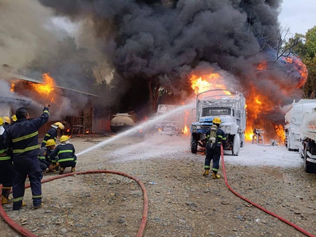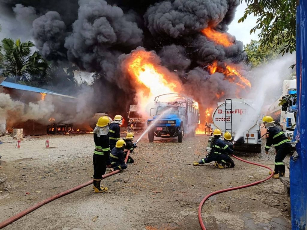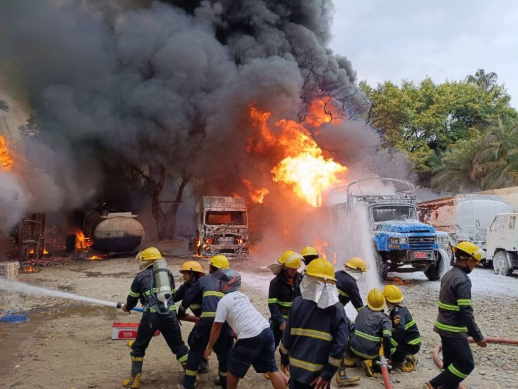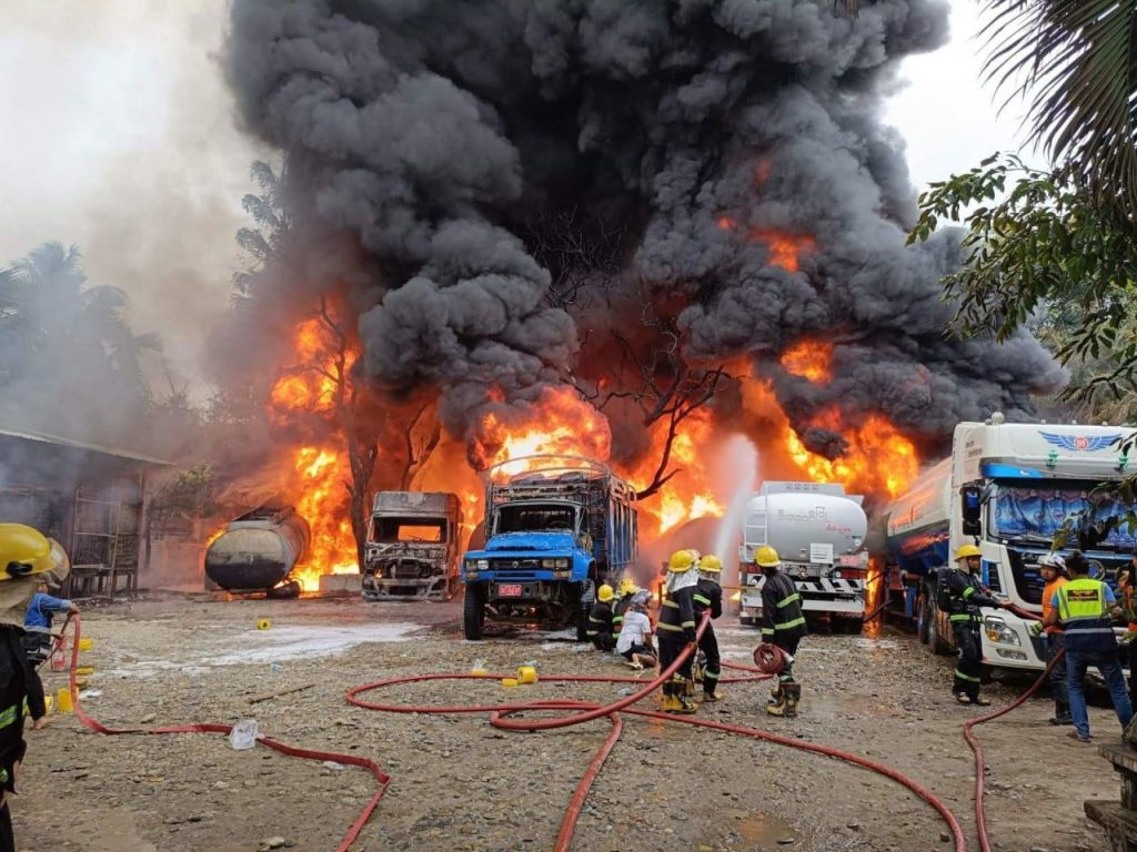 “ခြံငှားပြီး စက်သုံးဆီ သိုလှောင်ရောင်းဝယ်ရေးလုပ်တာ။ ဓာတ်ဆီဘောက်ဆာကားကနေ ဆီတိုင်ကီထဲကို လှယ်ထည့်ရာကနေ ပိုက်ဆက်ပြုတ်ပြီး မီးလောင်တာ”ဟု မီးငြှိမ်းသတ်သူတစ်ဦးကပြောသည်။
