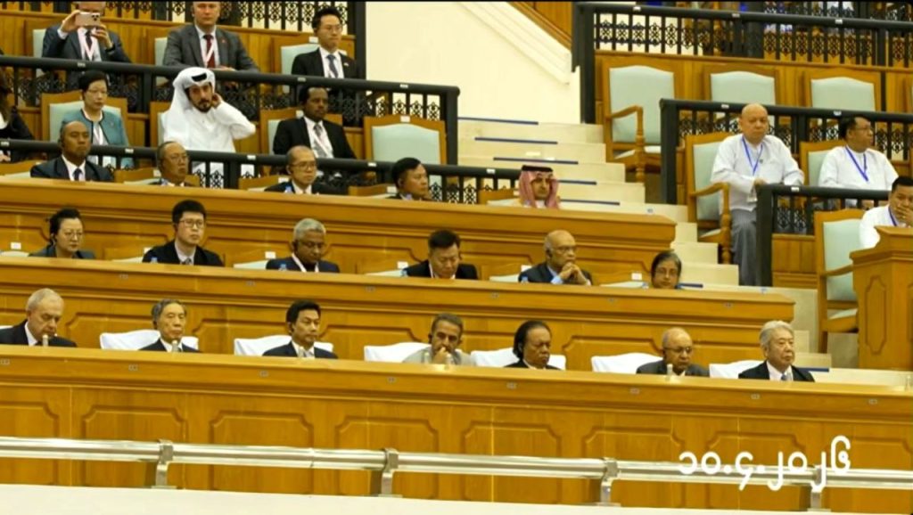 ယနေ့ ကျင်းပသည့် နိုင်ငံတော်သမ္မတအဖြစ် ရွေးချယ်တင်မြှောက်ခံရသူ ဦးမင်းအောင်လှိုင်နှင့် ဒုတိယသမ္မတများအဖြစ် ရွေးချယ်တင်မြှောက်ခံရသူများ၏ ကတိသစ္စာပြုခြင်း အခမ်းအနားသို့ နိုင်ငံတကာမှ သံတမန်များလည်း တက်ရောက်ခဲ့ကြသည်။