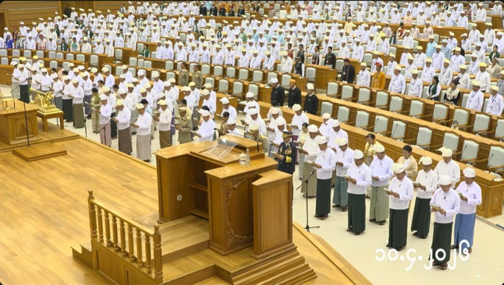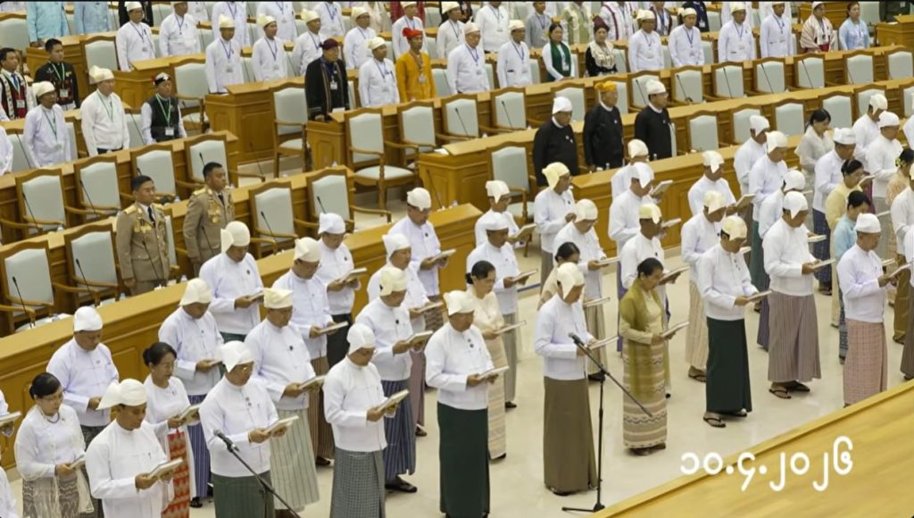 ပြည်ထောင်စုအဆင့် အဖွဲ့အစည်းဝင်များအဖြစ် ရွေးချယ်တင်မြှောက်ခံရသူများက ယနေ့ ကျင်းပသည့် တတိယအကြိမ် ပြည်ထောင်စုလွှတ်တော် ဆဋ္ဌမနေ့ အစည်းအဝေးတွင် ပြည်ထောင်စုလွှတ်တော် နာယက ဦးအောင်လင်းဒွေး၏ ရှေ့မှောက်၌ ကတိသစ္စာပြုကြသည်။