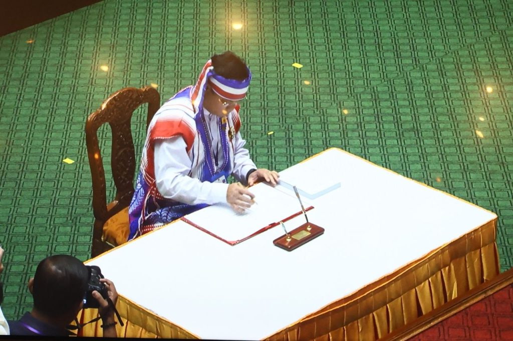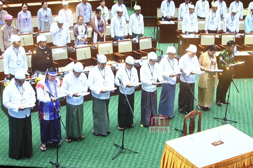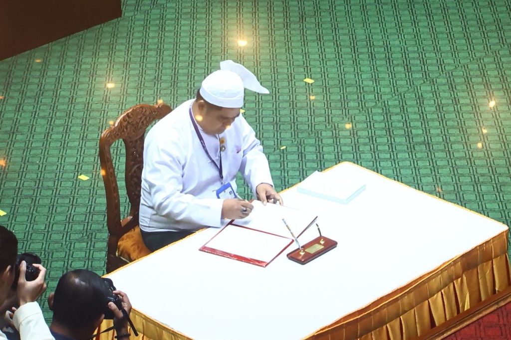 ဆက်လက်၍ တိုင်းဒေသကြီး တရားလွှတ်တော် တရားသူကြီးချုပ် ဒေါ်စန္ဒာသွယ်၊ တိုင်းဒေသကြီး ဝန်ကြီး (၁၀) ဦး၊ တိုင်းဒေသကြီး ဥပဒေချုပ် ဒေါ်ဖြူမာဝေ၊ တိုင်းဒေသကြီး စာရင်းစစ်ချုပ် ဒေါ်ခင်မာချို နှင့် တိုင်းဒေသကြီး တရားလွှတ်တော်တရားသူကြီး (၆)ဦးတို့ အသီးသီး ကတိသစ္စာပြုကာ လက်မှတ်ရေးထိုးခဲ့ပြီး မှတ်တမ်းတင်ခြင်းတို့ ဆောင်ရွက်ခဲ့ကြောင်း သိရသည်။