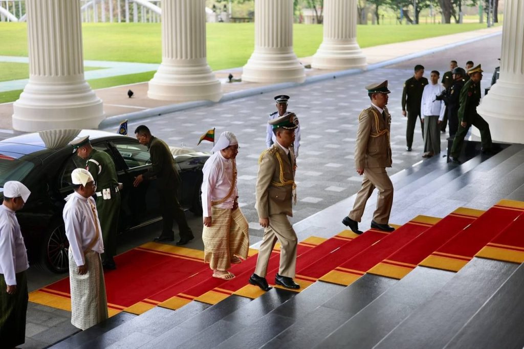 ပြည်ထောင်စုသမ္မတ မြန်မာနိုင်ငံတော်၊ နိုင်ငံတော်သမ္မတ ဦးမင်းအောင်လှိုင်၏ မိန့်ခွန်းနာခံခြင်းနှင့် ကတိသစ္စာပြုခြင်း အခမ်းအနားကို ယနေ့ မွန်းလွဲပိုင်းတွင် နေပြည်တော်ရှိ နိုင်ငံတော်သမ္မတ၏ ဧည့်ဆောင်တော်၌ ကျင်းပပြုလုပ်သည်။