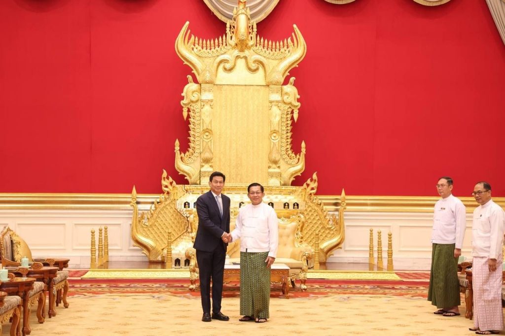 အလားတူ ပြည်ထောင်စုသမ္မတ မြန်မာနိုင်ငံတော် သမ္မတ ဦးမင်းအောင်လှိုင်ထံ နိုင်ငံတော် သမ္မတအဖြစ် ကတိသစ္စာပြုခြင်းအခမ်းအနားသို့ တက်ရောက်ခဲ့သည့် ထိုင်းနိုင်ငံ ယခင်ဒုတိယဝန်ကြီးချုပ်နှင့် နိုင်ငံခြားရေးဝန်ကြီး H.E. Dr. Parnpree Bahiddha – Nukar ဦးဆောင်သည့် ကိုယ်စားလှယ်အဖွဲ့က ယနေ့ မွန်းလွဲပိုင်းတွင် နိုင်ငံတော်သမ္မတ၏ ဧည့်ဆောင်တော်၌ လာရောက်ဂါရဝပြုတွေ့ဆုံသည်။