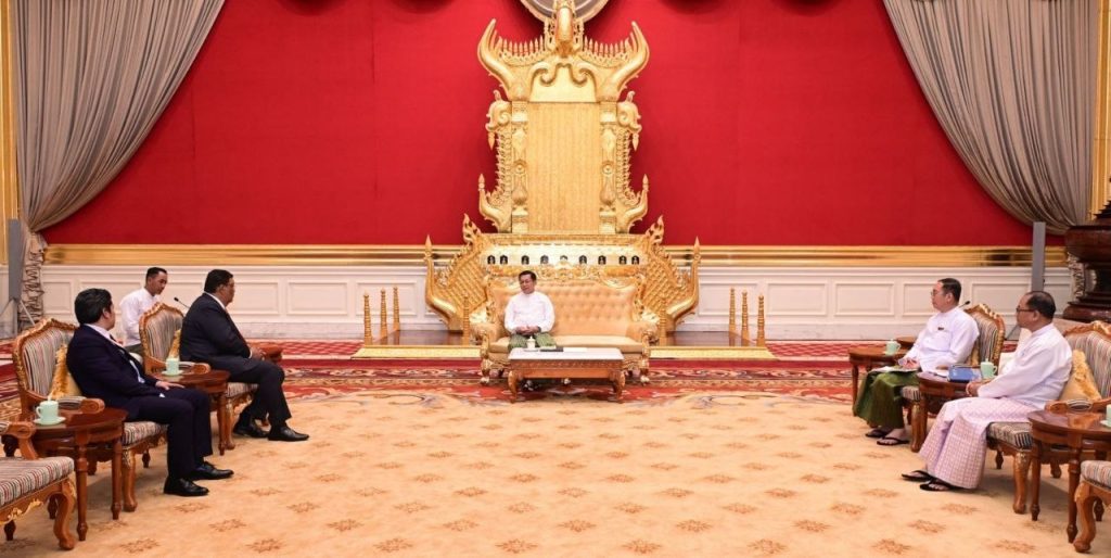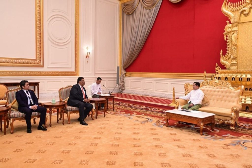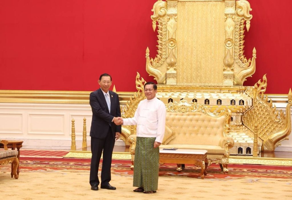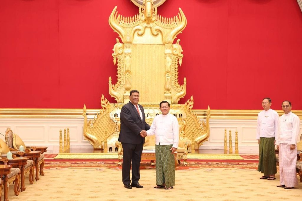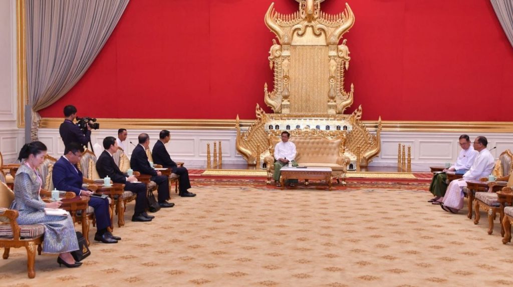 ပြည်ထောင်စုသမ္မတ မြန်မာနိုင်ငံတော်သမ္မတ ဦးမင်းအောင်လှိုင်ထံ နိုင်ငံတော်သမ္မတအဖြစ် ကတိသစ္စာပြုခြင်း အခမ်းအနားသို့ တက်ရောက်ခဲ့သည့် လာအိုပြည်သူ့ဒီမိုကရက်တစ်သမ္မတနိုင်ငံ၊ အာဆီယံအလှည့်ကျဥက္ကဋ္ဌ၏ မြန်မာနိုင်ငံဆိုင်ရာ အထူးကိုယ်စားလှယ် H.E. Mr. Alounkeo KITIKHOUN နှင့် ဗီယက်နမ်နိုင်ငံ နိုင်ငံခြားရေးဝန်ကြီးဌာန အရှေ့တောင်အာရှ၊ တောင်အာရှနှင့် တောင်ပစိဖိတ်ဌာနညွှန်ကြားရေးမှူးချုပ် ဦးဆောင်သည့် ကိုယ်စားလှယ်အဖွဲ့က ဧပြီ ၁၀ ရက် ညနေပိုင်းတွင် နိုင်ငံတော်သမ္မတ၏ ဧည့်ဆောင်တော်၌ လာရောက်ဂါရဝပြုတွေ့ဆုံသည်။