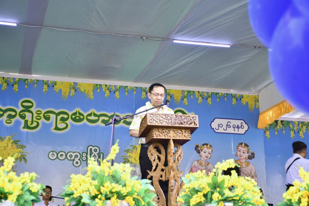 ဦးစွာ ဖွင့်ပွဲအခမ်းအနားတွင် မကွေးတိုင်းဒေသကြီးအစိုးရအဖွဲ့ဝန်ကြီးချုပ် ဦးတင်ကိုကိုက နှစ်သစ်ဆုတောင်းစကား ပြောကြားရာတွင် မဟာသင်္ကြန်ပွဲတော်သည် မြန်မာတို့၏ တန်ဖိုးမဖြတ်နိုင်သော ရိုးရာယဉ်ကျေးမှုပွဲတော် တစ်ခုဖြစ်သည့်အပြင် တစ်ဦးနှင့် တစ်ဦး ချစ်ကြည်ရင်းနှီးမှုပိုမိုရရှိလာစေခြင်း၊ မေတ္တာစိတ်ဖြင့် သည်းခံခွင့်လွှတ်ခြင်းများ တိုးပွားလာစေခြင်း၊ ဓလေ့စရိုက်ကောင်းများဖြစ်ထွန်းစေခြင်း စသည့် အနှစ်သာရများနှင့် ကျင်းပသည့် ထူးခြားလေးနက်သော မြန်မာ့ရိုးရာ ပွဲတော်ကြီးဖြစ်သဖြင့် ယဉ်ကျေးမှု အစဉ်အလာ မြင့်မားသည့် လူမျိုးတွင် မြန်မာလူမျိုးသည် ထိပ်ဆုံးမှ ပါဝင်သည့် အတွက် အစဉ်အလာကောင်းများကို ဆက်လက်ထိန်းသိမ်းဆောင်ရွက်ကြစေလိုကြောင်း၊ နှစ်သစ်ကူး အခါသမယတွင် ဘုရားပုထိုး၊ စေတီ၊ တန်ဆောင်း၊ ကျောင်းကန် များသို့ သွားရောက်ပြီး ဥပုသ် သီတင်းသီလ ဆောက်တည်ခြင်း အလှူဒါနပြုခြင်း၊ နှစ်ဟောင်းမှ အညစ်အကြေးများကို အတာရေဖြင့် ဆေးကြော သန့်စင်ခြင်း၊ မြန်မာ့နှစ်ဆန်းတစ်ရက် နေ့တွင် သံဃာတော် အရှင်သူမြတ်များက ရပ်ကွက်များ၊ လမ်းများအလိုက် အန္တရာယ်ကင်း ပရိတ်တရားတော်များ ရွတ်ဖတ်သရဇ္ဈယ်ခြင်း၊ ရေစက်သွန်းချ အမျှပေးဝေကြခြင်း၊ မိမိထက် အသက်အရွယ်ကြီး၍ ဂါရဝပြု ရိုသေလေးစား ထိုက်သူ သက်ကြီးရွယ်အို အဘိုး၊ အဘွား၊ အနန္တဂိုဏ်းဝင် မိဘ၊ ဆရာသမားများကို ပူဇော်ခြင်း၊ သုခိတာ ဒုက္ခိတာ သတ္တဝါများအား ကြင်နာသနား ကရုဏာပွား၍ ဘေးမဲ့လွှတ်ခြင်း စသည့် နှစ်လိုဖွယ်ရာ ကောင်းမှုကုသိုလ်များကို မြန်မာပြည်သူပြည်သားအားလုံးပြုလုပ်ကြသည့်ပွဲတော်ကြီး လည်းဖြစ်ပါကြောင်း၊ ယခုနှစ် အတာသင်္ကြန်တွင် မြန်မာ့ အမျိုးသားရေး စိတ်ဓာတ် ပေါ်လွင်နိုင်ရေး မြန်မာလူမျိုးများ၏ ဂုဏ်သိက္ခာ ၊ မြန်မာ့ရိုးရာ ယဉ်ကျေးမှု အမွေအနှစ်များကို စိတ်သစ်လူသစ် ခွန်အားသစ်များဖြင့် ထိန်းသိမ်းစောင့်ရှောက်ရင်း ယဉ်ကျေး သိမ်မွေ့စွာ ပါဝင်ဆင်နွှဲကြစေလိုကြောင်း၊ အထူးသဖြင့် လူငယ်များအနေနှင့် မြန်မာ့ရိုးရာ သင်္ကြန်၏ အနှစ်သာရကို မပျောက်ပျက်စေဘဲ ခေတ်နှင့်ဆီလျော်စွာ တစ်ဦးပေါ်တစ်ဦး မေတ္တာထားကာ မြန်မာ့ရိုးရာယဉ်ကျေးမှုအမွေအနှစ်များကို စိတ်သစ်လူသစ်ခွန်အားသစ်များဖြင့် ထိန်းသိမ်းစောင့်ရှောက်ရင်း မြန်မာ့ရိုးရာသင်္ကြန်အနှစ်သာရအား မပျောက်ပျက်စေဘဲပျော်ရွှင်စွာရေကစားနိုင်ကြပါစေကြောင်းဖြင့် ပြောကြားသည်။