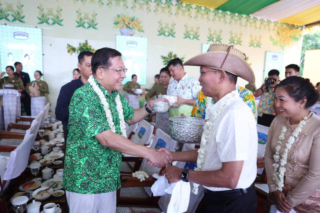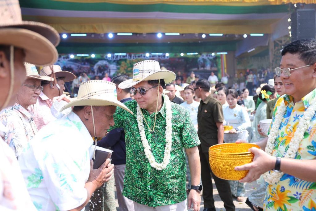 ယင်းနောက် နိုင်ငံတော်သမ္မတနှင့်ဇနီးတို့သည် အခမ်းအနားတက်ရောက်လာကြသည့် ပြည်ထောင်စုအဆင့်ပုဂ္ဂိုလ်များ၊ အခမ်းအနားတက်ရောက်လာကြသူများ၊ ယိမ်းအကအဖွဲ့များအား အတာသင်္ကြန်ရေကို မြန်မာ့ရိုးရာအစဉ်အလာနှင့်အညီ ပက်ဖျန်းပေးသည်။