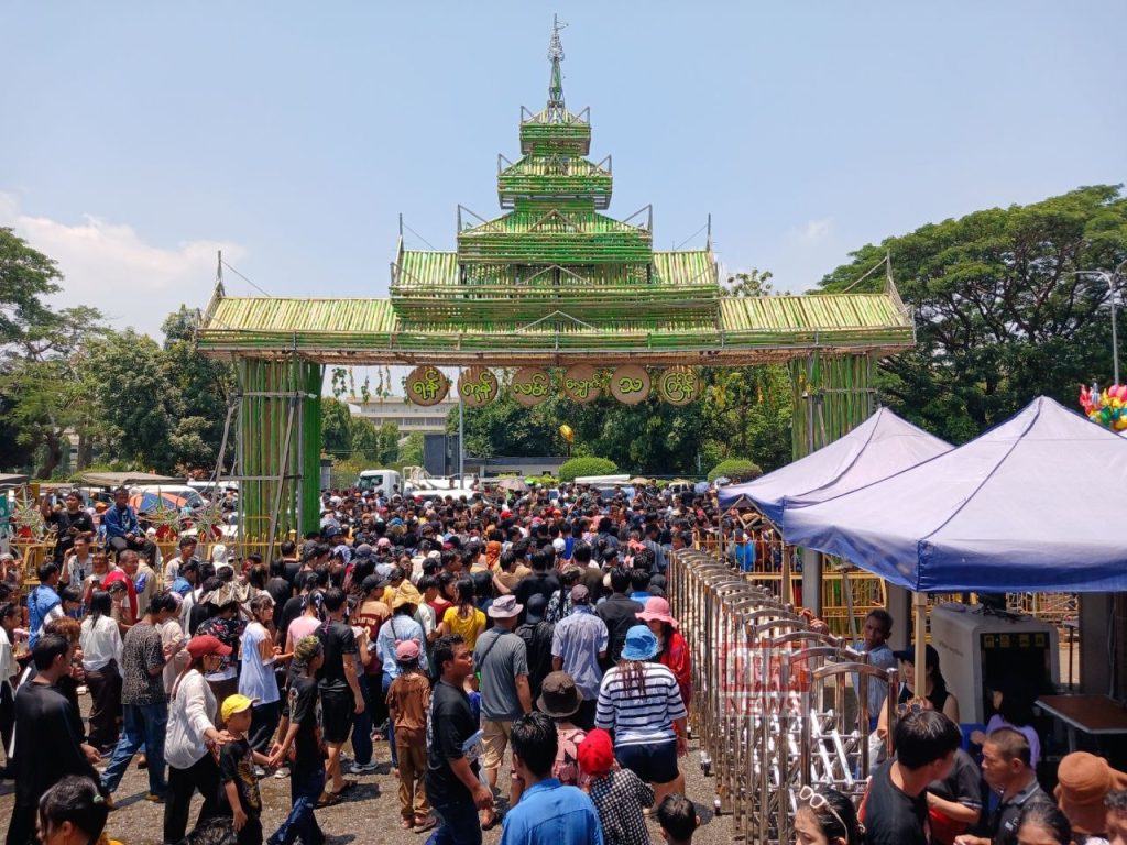 နေ့လယ် ၁၂ နာရီ ရေပက်ခြင်းနှင့် ဖျော်ဖြေရေးအစီအစဉ်များခေတ္တရပ်နားချိန်တွင် ပြည်သူ့ရင်ပြင်သို့ လာရောက်လည်သူများ လမ်းလျှောက်ပြန်လည်ထွက်ခွာချိန်တွင် ပြည်သူ့ရင်ပြင်ရှေ့မှ မြေနီကုန်း ကုန်းကျော်တံတားအောက်၊ ပြည်လမ်းတစ်လျှောက် မြေနီကုန်းကားမှတ်တိုင်အထိ လူတန်းရှည်လျားခဲ့ကြောင်း သိရသည်။