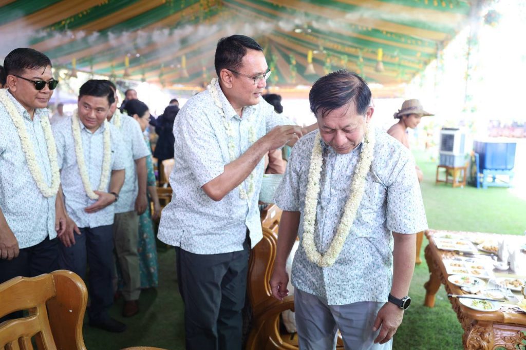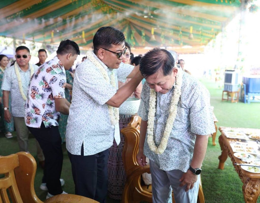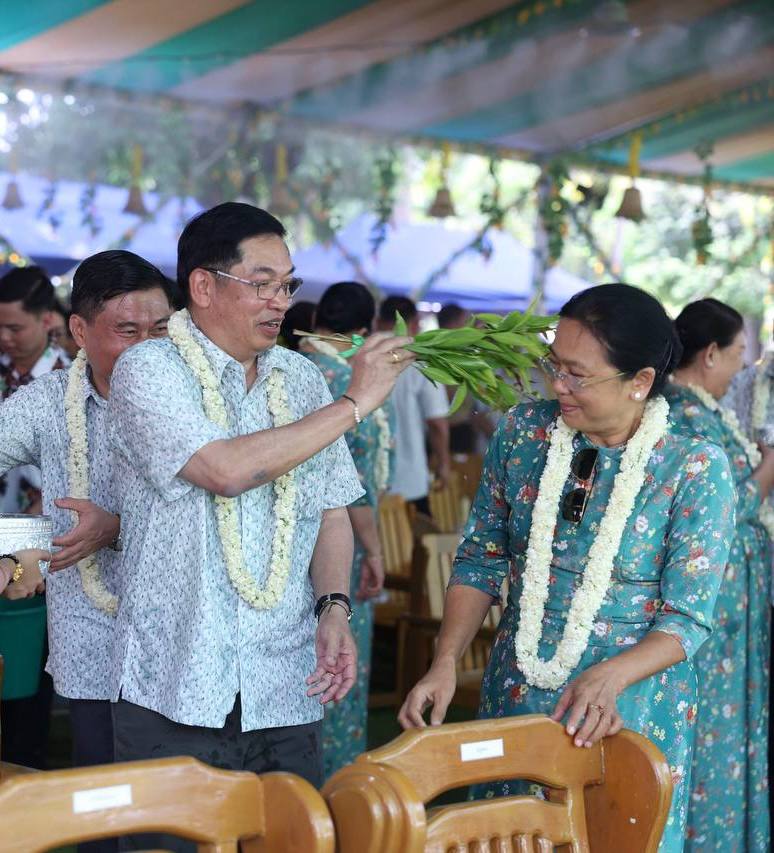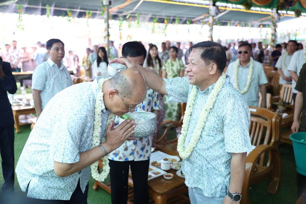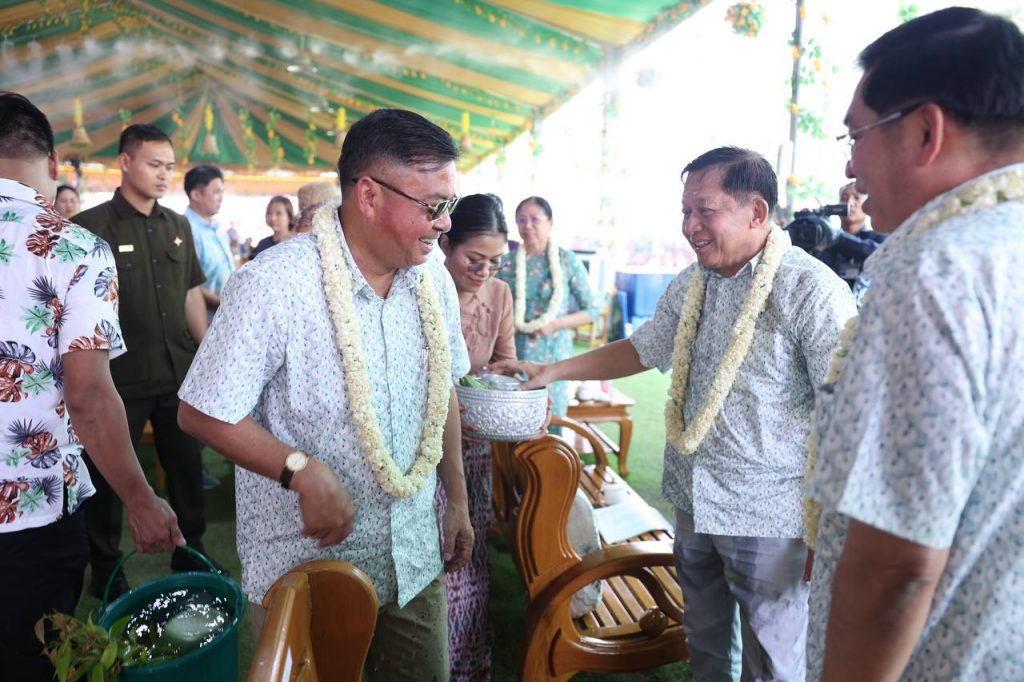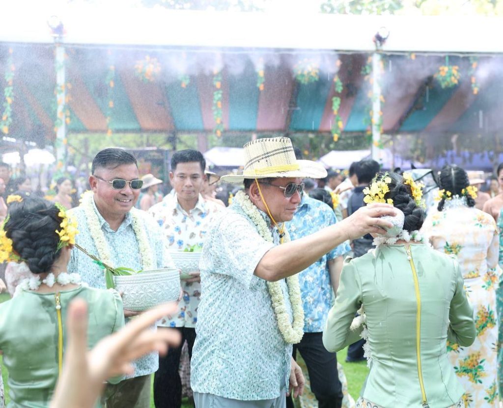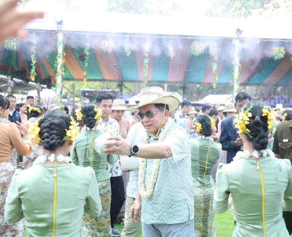 ယင်းနောက် နိုင်ငံတော်သမ္မတနှင့်ဇနီးတို့သည် အခမ်းအနားတက်ရောက်လာကြသည့် တပ်မတော်ကာကွယ်ရေးဦးစီးချုပ်နှင့်ဇနီး၊ ဒုတိယတပ်မတော်ကာကွယ်ရေး ဦးစီးချုပ် ကာကွယ်ရေးဦးစီးချုပ် (ကြည်း) နှင့် ဇနီး၊ ပြည်ထောင်စုအဆင့်ပုဂ္ဂိုလ်များနှင့် ဇနီးများ၊ အဆင့်မြင့်တပ်မတော် အရာရှိကြီးများနှင့်ဇနီးများ၊ အခမ်းအနား တက်ရောက်လာကြသူများ၊ အနုပညာရှင်များ၊ ယိမ်းအကအဖွဲ့များအား အတာသင်္ကြန်ရေကို မြန်မာ့ရိုးရာအစဉ်အလာနှင့်အညီ ပက်ဖျန်းပေးကြပြီး အတာရေသဘင်ပွဲတော်ကို အတူတကွဆင်နွှဲခဲ့ကြကြောင်း သိရသည်။