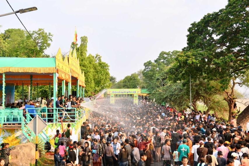 နှစ်ဟောင်းမှအညစ်အကြေးများကို ဆေးကြောဖယ်ရှားကာ နှစ်သစ်ကိုကြိုဆိုသည့် မြန်မာ့ရိုးရာ မဟာသင်္ကြန်ပွဲတော်ကို အစဉ်အလာမပျက်ကျင်းပလျက်ရှိရာ မကွေးမြို့၊ လမ်းလျှောက်မဟာသင်္ကြန် (အကြတ်နေ့)၌ မကွေးမြို့ဒေသခံပြည်သူများအပြင် ရပ်ဝေးရပ်နီးမှ မိဘပြည်သူများပါပျော်ရွှင်စွာလာ ရောက်ရေကစားသူများဖြင့် တိုးမပေါက်အောင်စည်ကားလျက်ရှိသည်။