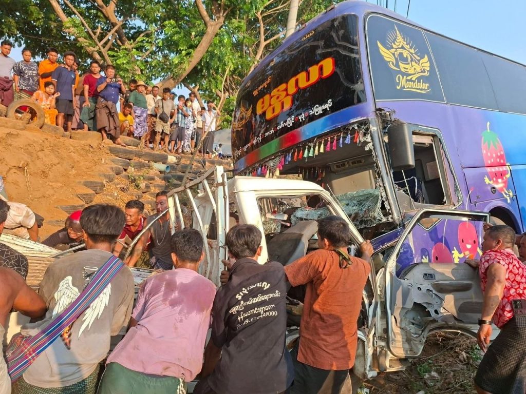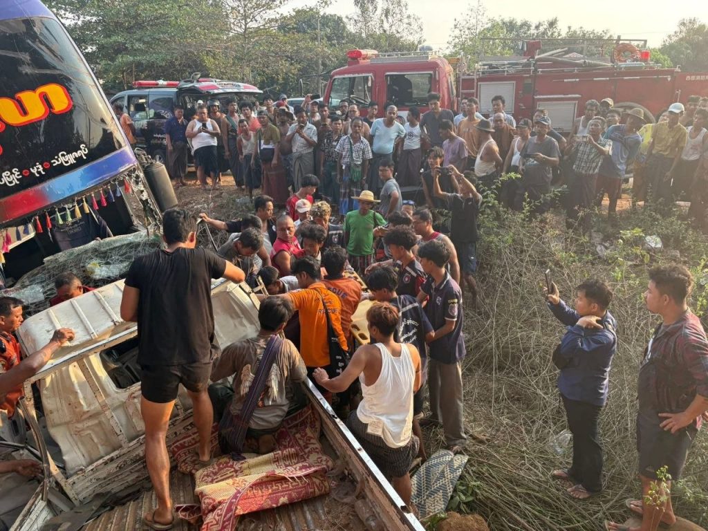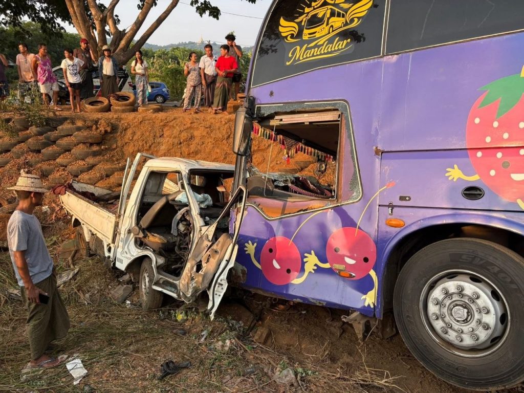 သံဃာနှင့် လူ စုစုပေါင်း ၁၉ ဦး လိုက်ပါလာသည့် လိုက်ထရက်ဘွန်ဂိုယာဥ်နှင့် ခရီးသည်တင်ယာဥ် တိုက်မိရာမှ ကနဦးဖြစ်စဥ်တွင် ကိုရင်နှင့် သံဃာ ၆ ပါး ပျံလွန်ပြီး အမျိုးသားသုံးဦးသေဆုံးကာ ဆယ်ဦးဒဏ်ရာရခဲ့သည်ဟု သတင်းထုတ်ပြန်သော်လည်း လက်ရှိအချိန်တွင် စုစုပေါင်းသေဆုံးမှု ၁၃ ဦးအထိ ဖြစ်လာခဲ့ပြီဖြစ်ကြောင်း ဒေသခံကယ်ဆယ်ရေးလုပ်ဆောင်သူများထံမှ သိရသည်။