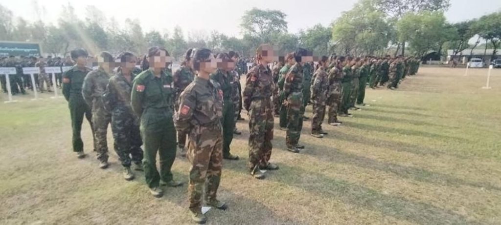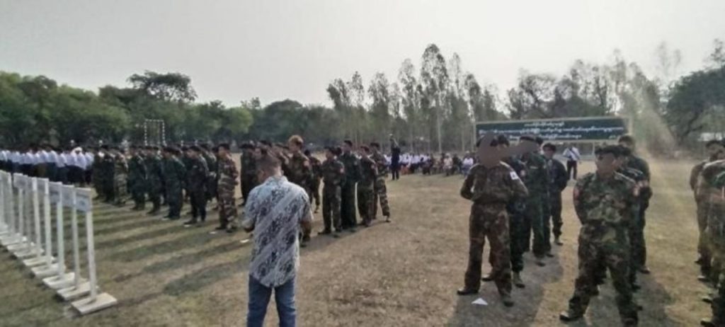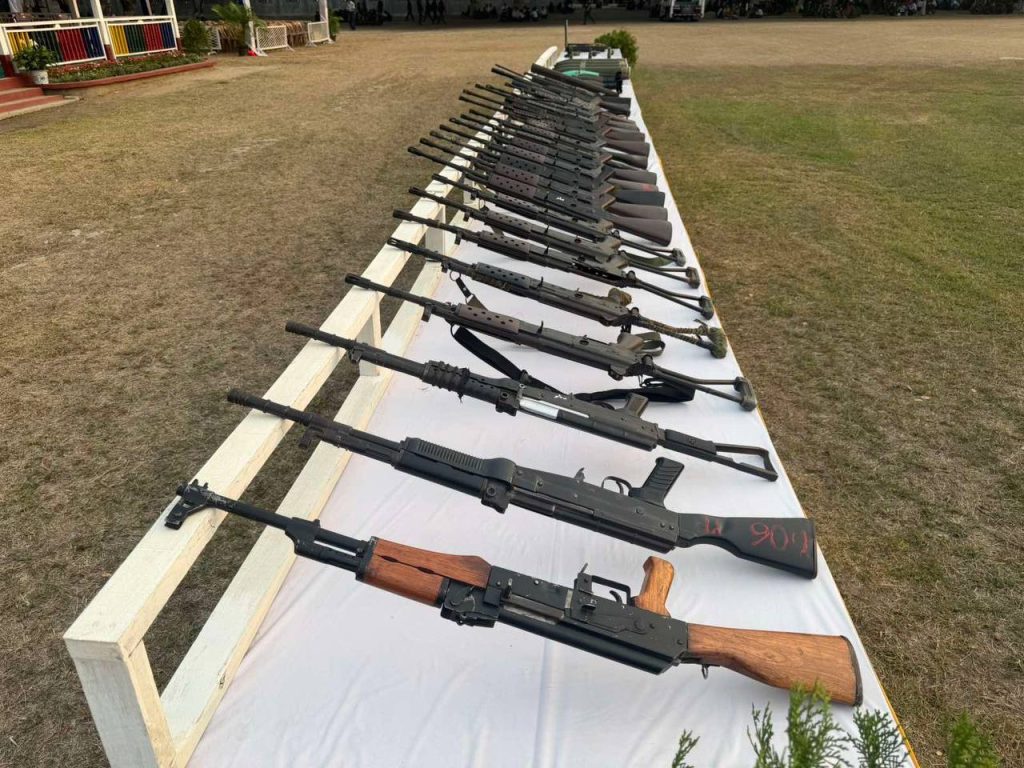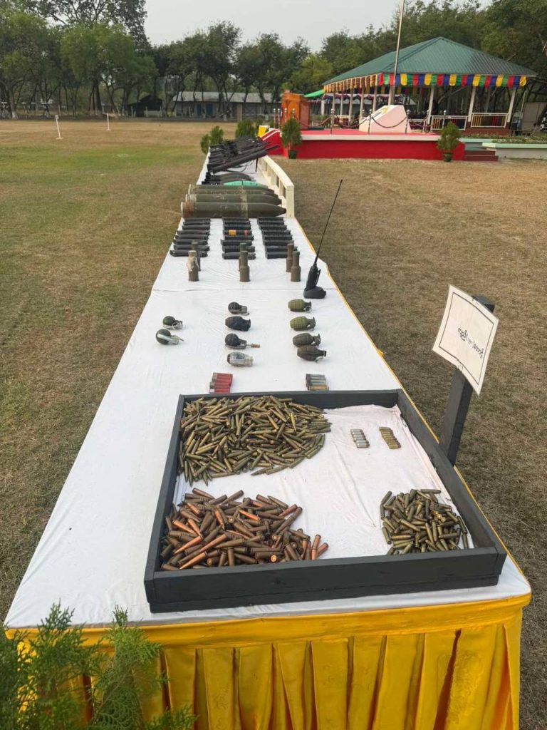 ပုံစာ။ အလယ်ပိုင်းတိုင်းစစ်ဌာနချုပ်တွင် PDF ရာပေါင်းများစွာက လက်နက်ခဲယမ်းအများအပြားဖြင့် ယနေ့ အလင်းဝင်မှုမြင်ကွင်း (Photo – Credit)