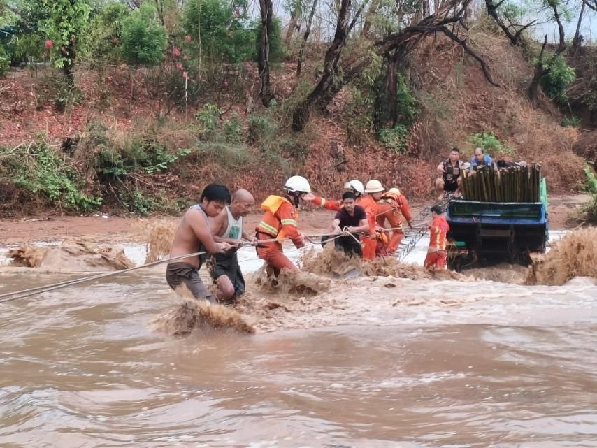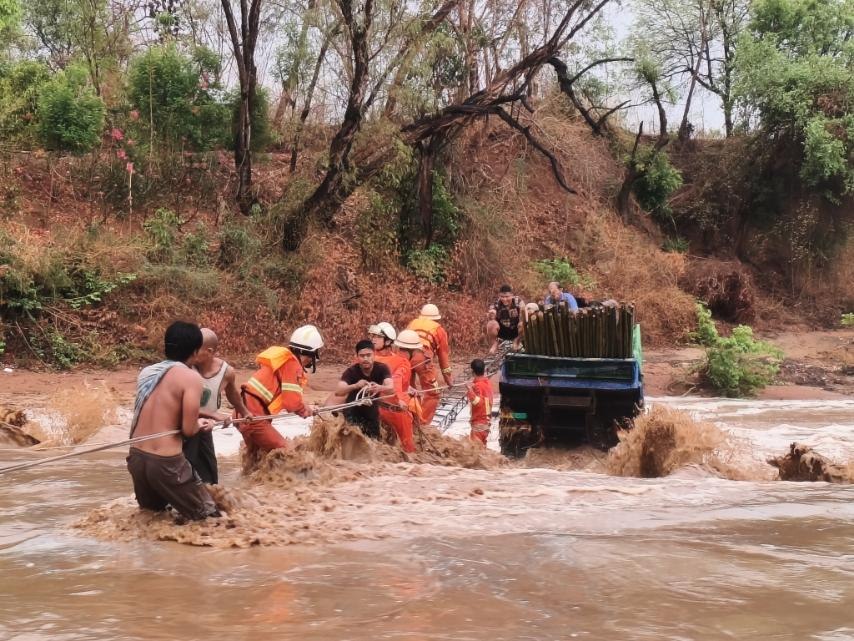 ချောင်းရေလျှံမှုကြောင့် ပိတ်မိနေသော ကိုယ်ဝန်သည်တစ်ဦးအပါအဝင် အမျိုးသမီး ၁၁ ဦး၊ ကလေးသုံးဦးနှင့် အမျိုးသားငါးဦးတို့ကို ကျောက်ပန်းတောင်းမီးသတ်စခန်းမှ ကယ်ဆယ်ရေးယာဥ် ၁ စီး၊ ပုပ္ပါးနယ်မြေမီးသတ်စခန်းမှ မီးသတ်ယာဥ် ၁ စီးနှင့် သန္ဓေအရန်မီးသတ်တပ်ဖွဲ့ဝင် ၂၀ ဦးက ရှာဖွေကယ်ဆယ်ရေးကြိုးများအသုံးပြုကာ တာဝန်ရှိသူများ၊ ဒေသခံလူမှုကူညီရေးအသင်းမှ အသင်းဝင်များနှင့်ပြည်သူများက ဝိုင်းဝန်းကယ်ဆယ်ခဲ့ရာ တစ်နာရီကျော်အကြာ ညနေ ၆ နာရီ ၃၄ မိနစ်တွင် အားလုံးကို ကယ်ဆယ်နိုင်ခဲ့ကြောင်း သိရသည်။