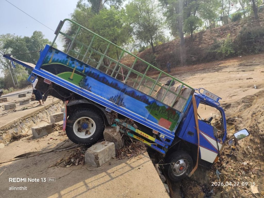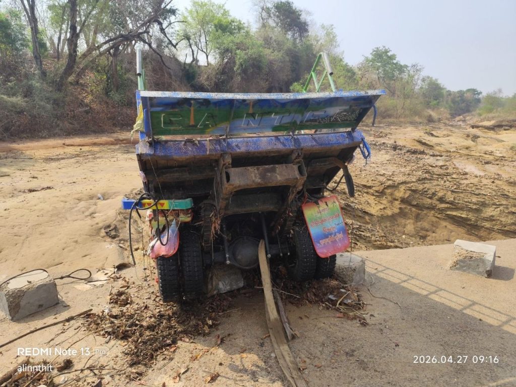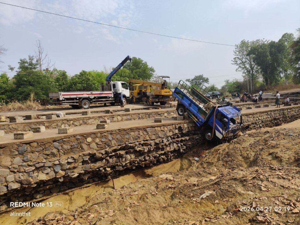 ချောင်းရေထဲနစ်ခဲ့သော မော်တော်ယာဥ်ကို ယနေ့ ဧပြီလ ၂၇ ရက်နေ့ နံနက်ပိုင်းက ကရိန်းဖြင့် မတင်ကာ ရွေ့ပြောင်းနိုင်ခဲ့သည်။