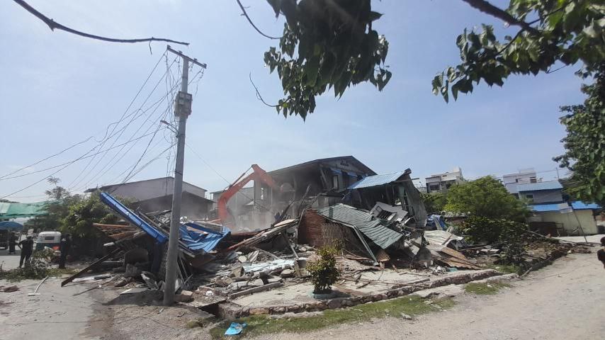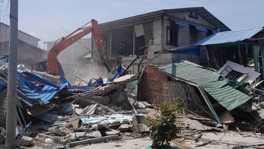 ချမ်းမြသာစည်မြို့နယ်တွင် လမ်းဘေး၌ ကျူးကျော်ဆောက်လုပ်နေထိုင်သော နေအိမ် ၁၀ လုံးအား ယနေ့ (ဇွန်လ ၃၀ ရက်) နံနက်ပိုင်းက မန္တလေးမြို့တော်စည်ပင်သာယာရေးအဖွဲ့မှ ဖြိုဖျက်ရှင်းလင်းနေကြောင်း မြို့နေပြည်သူများပြောပြချက်အရ ကနဦးသိရသည်။