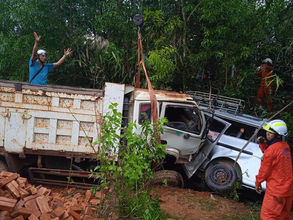 “ကယ်ဆယ်ရေး ဖြစ်စဉ်တစ်ခုလုံးကတော့ ၄၅ မိနစ်လောက် ကြာမယ်။ အုတ်သယ်ကားကို အရင် ကရိန်းနဲ့ ဆွဲထုတ်ရတယ်။ ယာဉ်မောင်းက ကားမှာ လက်ညပ်နေတာ။ အဲ့ဒါကိုလည်းကားကို ဖြတ်တောက်ပြီးတော့ ကယ်ဆယ်ခဲ့ပါတယ်” ဟု အဆိုပါ တာဝန်ရှိသူက ဆိုသည်။