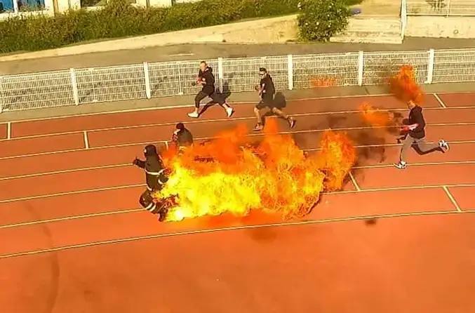 အသက် ၃၉ နှစ်အရွယ် ပြင်သစ်နိုင်ငံက မီးသတ်သမားတစ်ဦးဟာ မီးရှို့ထားတဲ့ ဝတ်စုံဝတ်ကာ တစ်ကိုယ်လုံးလောင်ကျွမ်းနေရင်းမှပင် အကွာအဝေး ၈၉၃ ပေ ပြေးကာ ဂင်းနစ်စံချိန် နှစ်ခု တင်နိုင်ခဲ့တယ်လို့ သိရပါတယ်။